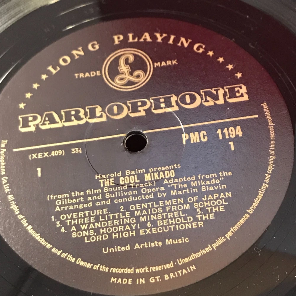 Language: English Speed: 33 RPM Release Year: 1963 Style: Film Score/Soundtrack, Musical/Original Cast, Musicals, TV Score/Soundtrack Case Type: Cardboard Sleeve Record Size: LP (12-Inch) Artist: Various Colour: Black Era: 1960s Record Label: Parlophone Type: LP Genre: Easy Listening, Soundtracks & Musicals Number of Audio Channels: Mono Release Title: The Cool Mikado Country/Region of Manufacture: United Kingdom Sub-Genre: Big Band/Swing Material: Vinyl Record Grading: Excellent (EX) Format: Record