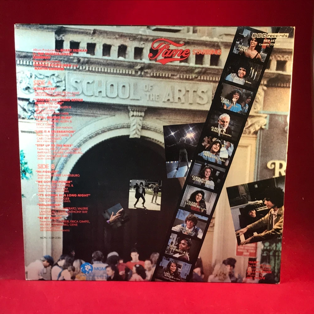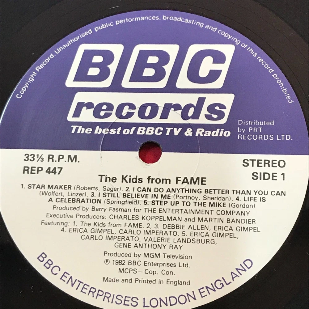 ORIGINAL SOUNDTRACK The Kids From Fame - 1982 UK vinyl LP featuring the music from the soundtrack of the TV Series, in a gatefold picture sleeve. BBC Records REP 447 Starmaker I Can Do Anything Better Than You Can I Still Believe In Me Life Is A Celebration Step Up To The Mike Hi-Fidelity We Got The Power It's Gonna Be A Long Night Desdemona Be My Music Record Condition : Excellent Sleeve : Excellent Please check out our other items !
