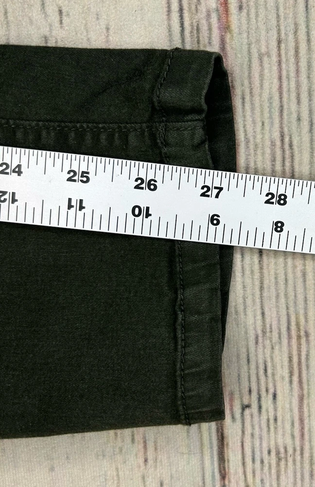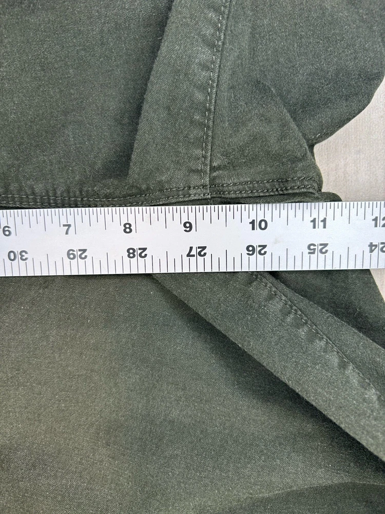 Upgrade your wardrobe with these stylish and comfortable Orvis Women's 10 Green Stretch Twill Pull On Leggings Skinny Ankle Pants. The pants are perfect for casual occasions and come in a beautiful green color that will complement any top. The pants are made of a blend of spandex, rayon, cotton, and cotton blend fabrics that provide a comfortable and stretchy fit. The flat front and slim fit of the pants create a flattering silhouette, while the pull-on closure and pockets add convenience and functionality. These pants are machine washable, making them easy to care for. The mid-rise and twill fabric type ensure durability and comfort. Get your hands on these trendy jeggings today and step out in style! Check pictures for condition and measurements for size.