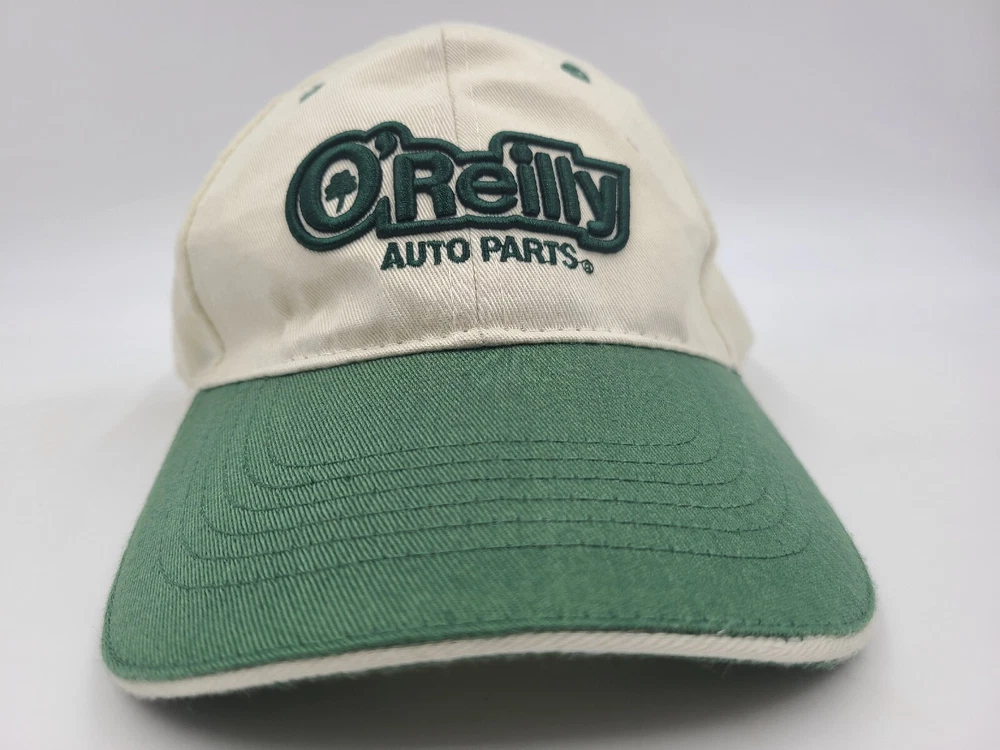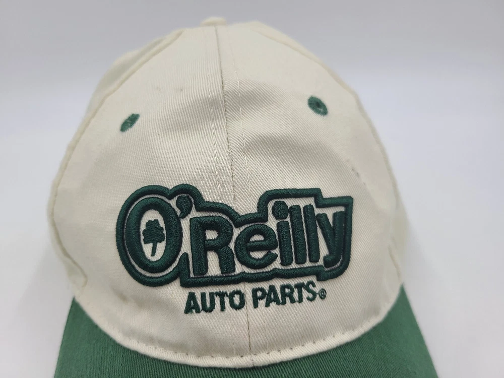 Has some stains on the front as seen in photos. O'Reilly Auto Parts Adjustable Hat Cap Car Truck Dad Mom Men Women White Green. EACH ADDITIONAL HAT PURCHASED IS ONLY $1 ADDED SHIPPING!