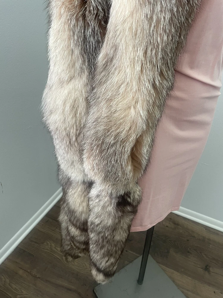 Add a touch of luxury to any outfit with this beautiful vintage limited edition Oscar de la Renta shawl/wrap. Made from high-quality fur crystal fox fur, this multicolored piece is perfect for any season and occasion. The intricate and high fashion design handmade construction make it a true statement accessory. This limited edition runway piece is a must-have for any classy and most certainly sassy woman. Whether you're dressing up for a special occasion or adding a touch of glamour to your everyday look, this Oscar piece is sure to turn heads. Dry clean only and made in the United States, this vintage piece is a true gem!