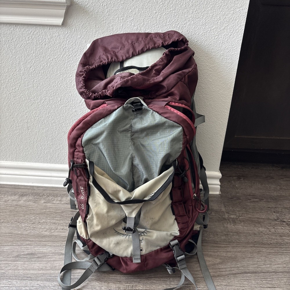 OSPREY Aura 50 Women’s Hiking Backpack Large Burgundy Red for Trail Adventures