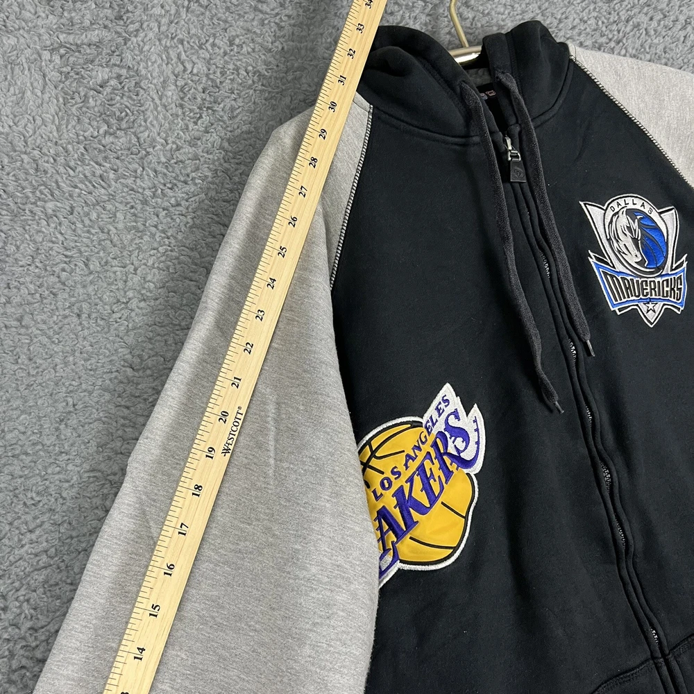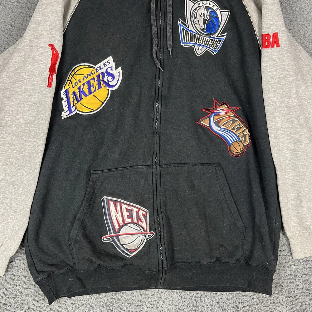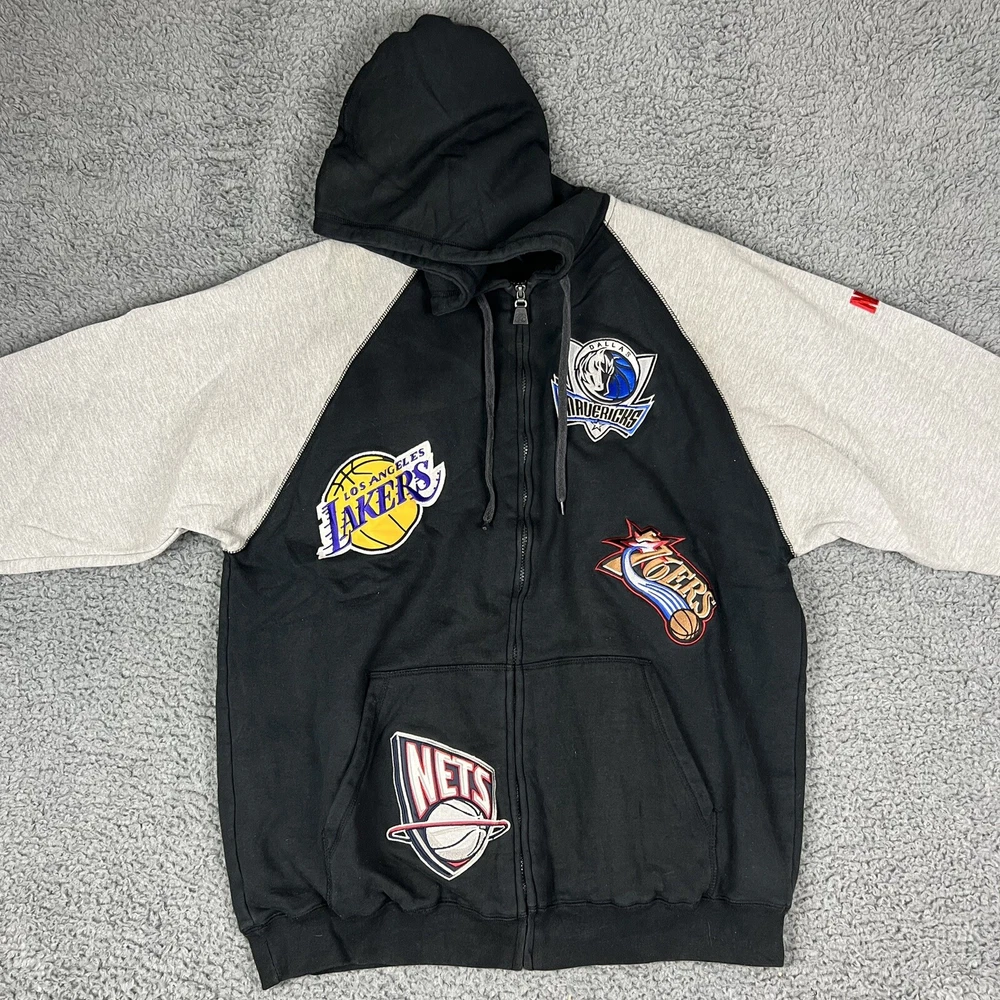 Show off your love for the Los Angeles Lakers, Boston Celtics, Minnesota Timberwolves, 76ers and others with this vintage NBA patch zip-up hoodie. Made of high-quality materials, this officially licensed sweatshirt features the team's iconic logo and is perfect for any basketball fan. The hoodie comes in size 2XL and is designed for men, with a black color and made in China. Whether you're a collector or just looking for a stylish addition to your wardrobe, this sweatshirt is a must-have. It's great for wearing to games or just around town, and is sure to turn heads with its unique design. Don't miss out on this rare find that showcases your love for the Lakers!