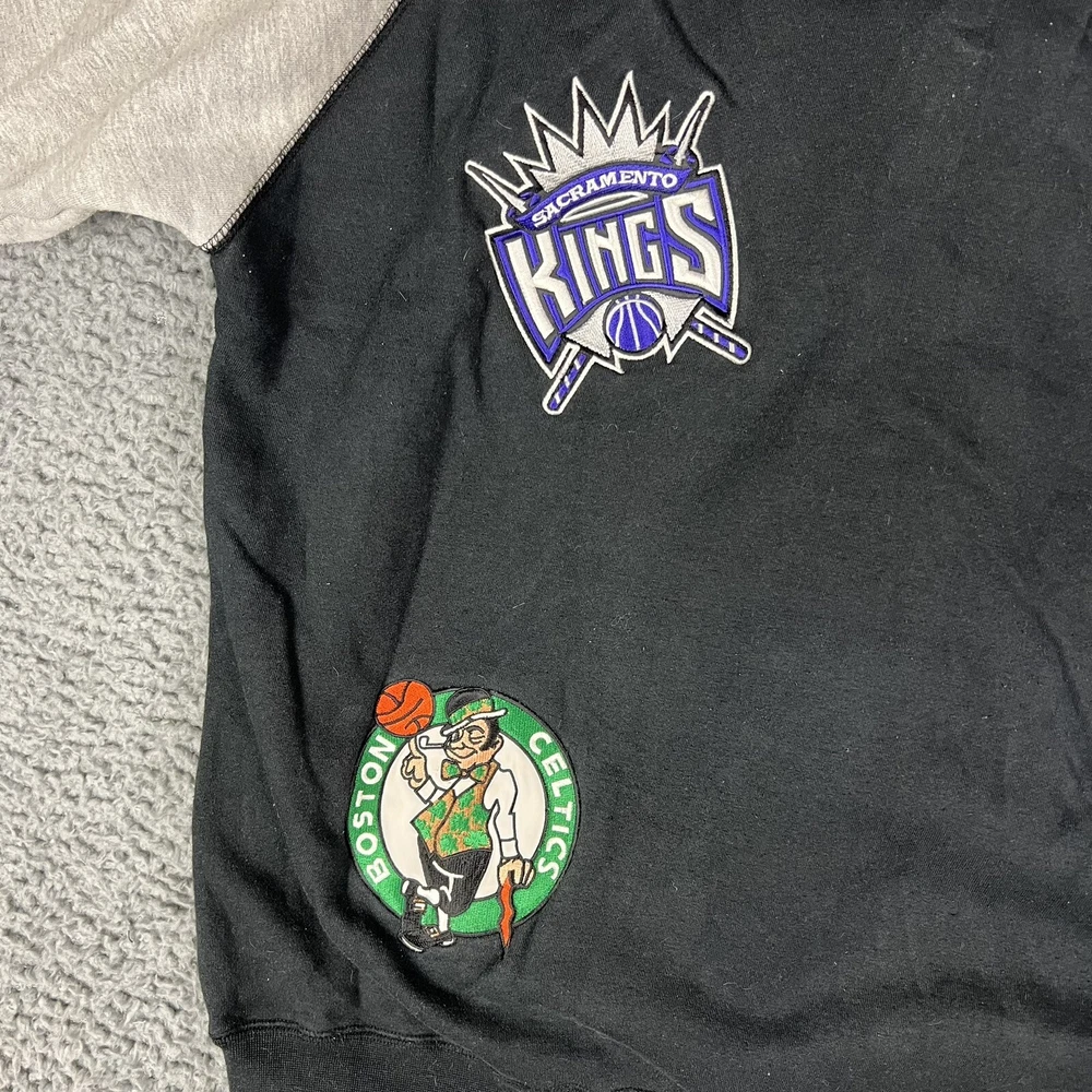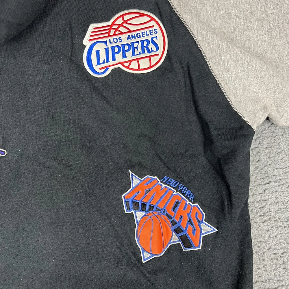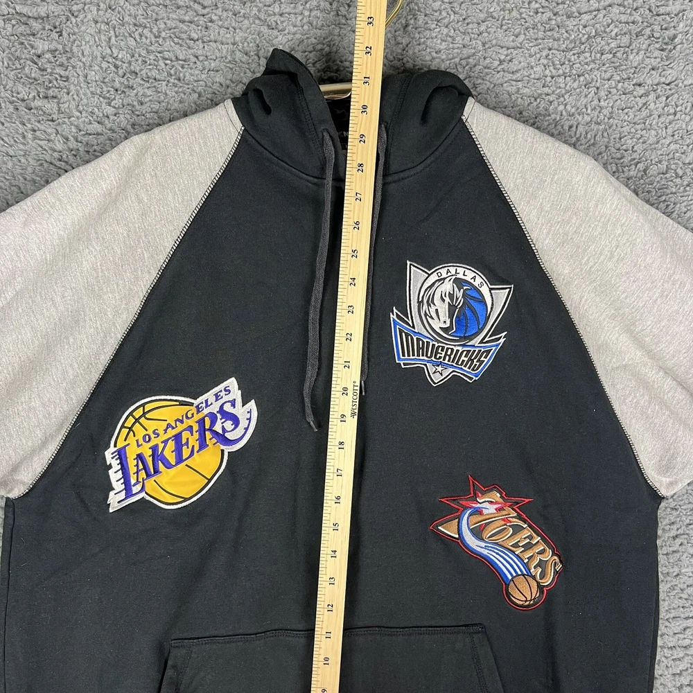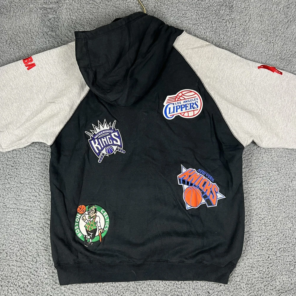 Show off your love for the Los Angeles Lakers, Boston Celtics, Minnesota Timberwolves, 76ers and others with this vintage NBA patch zip-up hoodie. Made of high-quality materials, this officially licensed sweatshirt features the team's iconic logo and is perfect for any basketball fan. The hoodie comes in size 2XL and is designed for men, with a black color and made in China. Whether you're a collector or just looking for a stylish addition to your wardrobe, this sweatshirt is a must-have. It's great for wearing to games or just around town, and is sure to turn heads with its unique design. Don't miss out on this rare find that showcases your love for the Lakers!