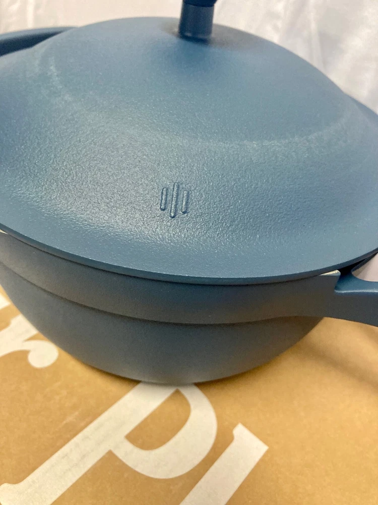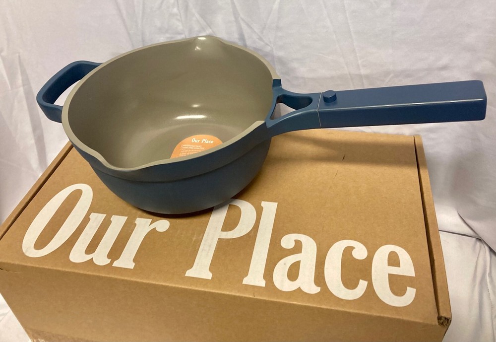 Tracking Number is provided for all listings! -- All items will be shipped out within 0-1 days after purchase! Feel free to ask us any questions you may have for our listings! -- OUR PLACE~Mini Perfect Pot, 2.5QT, Blue Salt, NEW (open bx) What's Included.. Mini Perfect Pot 2.0 Self-basting, steam-release lid with a built-in strainer Nesting Beechwood Spoon 16.9 in. length, 8.5 in. diameter, 4.2 in. depth, 6.7 in. height with lid 2.5 qt. capacity Lightweight construction (3.3 lb.) Compatible with all cooktops, including induction Aluminum body for fast, even heat Designed as a pot that does everything and then some, this ultra-handy size is perfect for sauces, soups, grains, eggs, leftovers, and so much more. A 2.5 qt. pot that boils, bakes, braises, roasts, fries, strains, serves, stores … does it all! Featuring Thermakind® — our exclusive, most advanced, 50% longer lasting ceramic nonstick coating made without potentially toxic materials like PFAS (including PTFEs and PFOAs), lead and cadmium Oven safe up to 450°F, for all your favorite stovetop-to-oven recipes