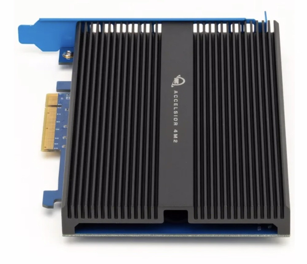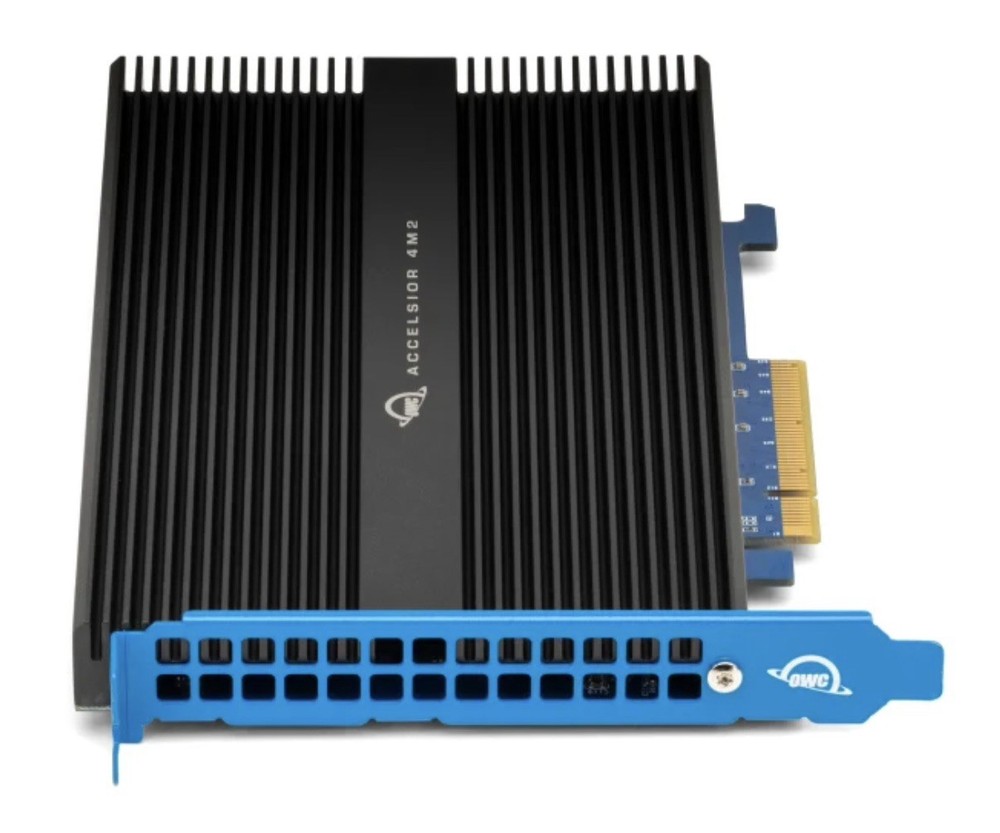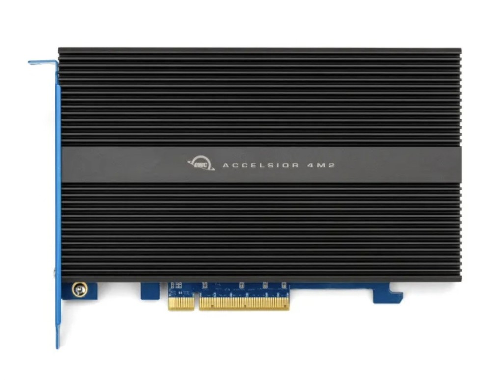 The OWC Accelsior 4M2 32TB is a PCIe NVMe SSD storage card designed for extreme performance and massive capacity, delivering over 6,000 MB/s sustained speeds with up to 32TB of storage in a single half‑length card. Includes manufacturer’s limited warranty, which is transferable, and valid until 2029. The individual four x 8TB m.2 SSD chips can be removed and inserted into any m.2 slot if desired. Due to extreme SSD shortage, this item is no longer available from OWC in this high capacity version. Comes with original box. Note: stock photos shown. --- 🔹 Overview The OWC Accelsior 4M2 is OWC’s flagship PCIe add‑in card solution, engineered for professionals who demand uncompromised throughput and reliability. It integrates four M.2 NVMe SSDs under a finned heatsink, connected via an ASMedia ASM2824 PCIe switch to ensure each drive runs at full PCIe x4 speeds. • Capacity: Up to 32TB (using four 8TB Aura Ultra III SSDs) • Performance: Sustained 6,000+ MB/s read/write in RAID 0 • Interface: PCIe 3.1 x8 (backward compatible with PCIe 2.0) • Cooling: Silent, throttle‑free operation with a finned heatsink and thermal pads • Compatibility: Mac Pro (2010, 2012, 2019) and PC towers; also usable externally via Thunderbolt 3 expansion chassis (e.g., OWC Mercury Helios 3S) --- 🔹 Key Features • Extreme bandwidth: Ideal for large‑format video editing, VR/AR workflows, high‑transaction applications, and extreme gaming A B. • Flexible RAID options: Bundled with SoftRAID software, supporting RAID 0, 1, 4, 5, and 10. • Bootable: Supports booting from any single drive on both Mac and PC. • Thunderbolt versatility: When paired with a Thunderbolt 3 PCIe expansion chassis, delivers up to 2,500 MB/s real‑world speeds for mobile workflows.