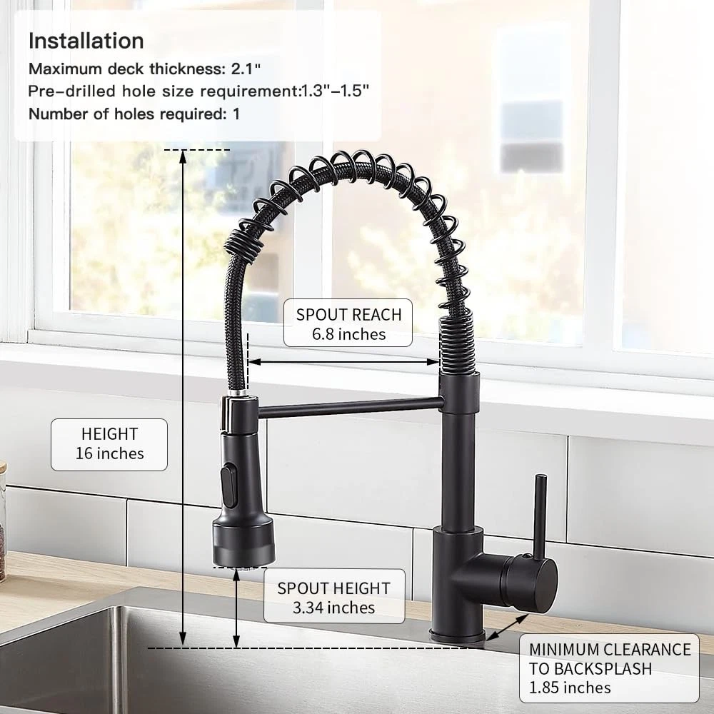 FEATURES 1. Feature a modern look and high-grade spring with extreme flexibility 2. Two nozzles of different uses satisfy your specific needs 3. The high-pressure nozzle provides a powerful, high-volume spray while the other one has a steady stream 4. The two nozzles are removable to rinse every part of cookware and sink 5. Made of top grade brass with the blak finish, exceptionally durable and resistant to scratching, tarnishing, corrosion and discoloration Specifications Faucet Type: Single Handle Pull Down Sprayer Kitchen Sink Faucet Style: Contemporary Number of Holes Required: One Water Feature: Mix Hot and Cold Installation Method: Surface Mount / Desk Mount Water Mode: One Spout with Stream Water,another Spout with Spray Water Water Pressures: Minimum 0.3mpa,Maximum1.5mpa Water Pressures Test: Each faucet is tested at high water pressure to ensure high quality and long durability Number of Handles: Single Handle Provides Both Convenience and Control Precision Use Time of Valve: The ceramic disc cartridge can survive 500,000 times open & close test Color of LED lights changes according to the water temperature. Protect your family from hot water, especially elderly people and children. LED works by water flow,NO need of batteries. Dual mode setting- Your kitchen faucets sprayer provides soft aerated stream(with LED) and splash-free powerful spray due to its hard rubber sprayer holes. 360 degree kitchen sink faucets sprayer, the switch can be placed in every position as you like. HEALTHY kitchen sink faucet-The SUS304 stainless steel spring and solid brass kitchen faucet body, has no worry of LEAD. Black kitchen sink faucet made up of food-grade PEX inner hoses, provides you fresh and clean water. Enjoy your healthy utility sink faucet. Space saving bar sink faucet- Kitchen sink faucet black with pretty design cross bar, offer you more kitchen room for cloth or other little kitchen things. It’s more than a faucet for kitchen sink. OWOFAN - The most important thing is that we provide a 5 YEAR WARRANTY. And we are online 7*24 Hours. If you have any questions or concerns, please contact us without hesitate. We will solve your problem perfectly in the shortest time.