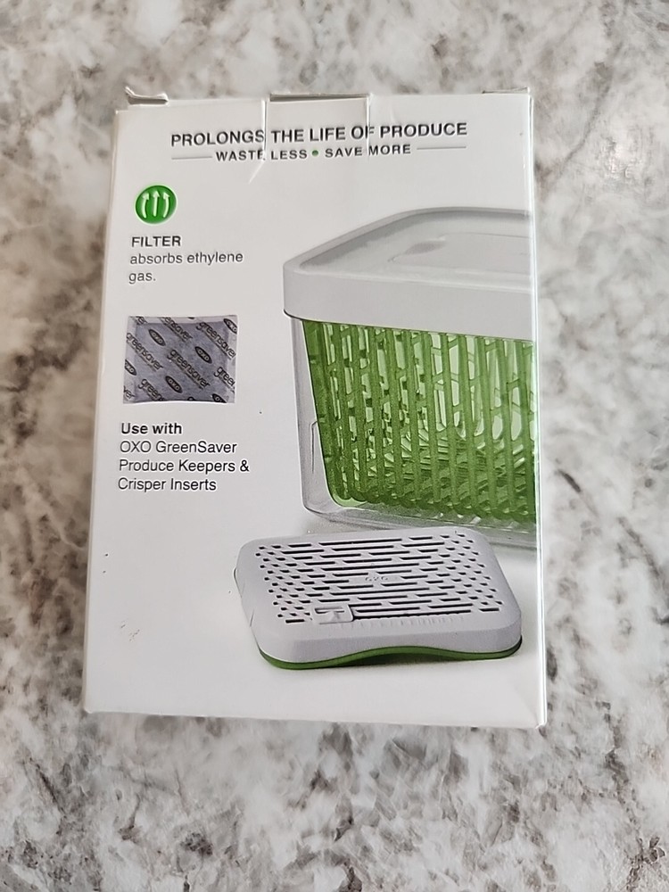 Keep your kitchen clean and organized with the OXO Good Grips GreenSaver Carbon Filter Refills. This set includes four rectangular carbon filters that are designed to fit perfectly in your OXO Good Grips food storage containers. The filters are made from high-quality materials and are guaranteed to keep your food fresh for up to one year. Each filter measures 4.5 inches in height and 4 inches in length, with a width of 1 inch. They are easy to install and use, and are perfect for storing a variety of foods, including fruits, vegetables, and meats. The set comes with a manufacturer warranty of four years, ensuring that you have peace of mind when it comes to the freshness of your food.