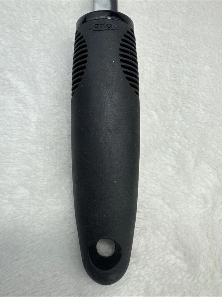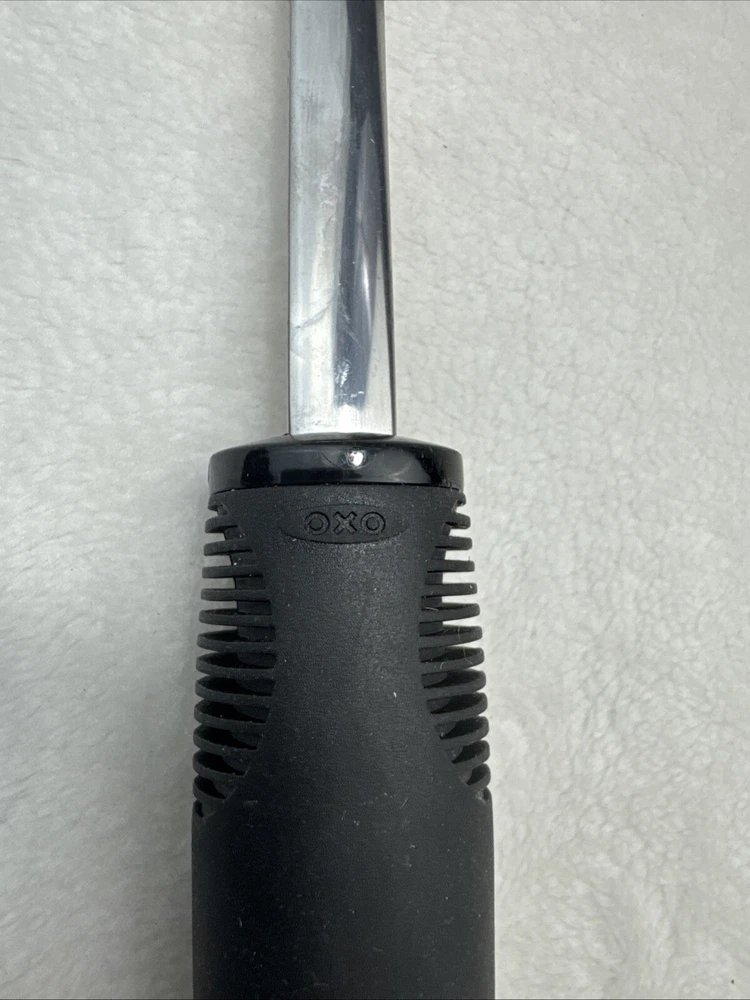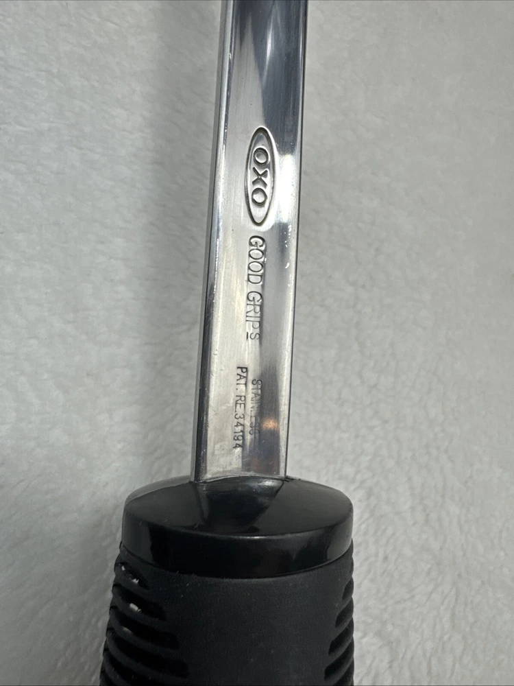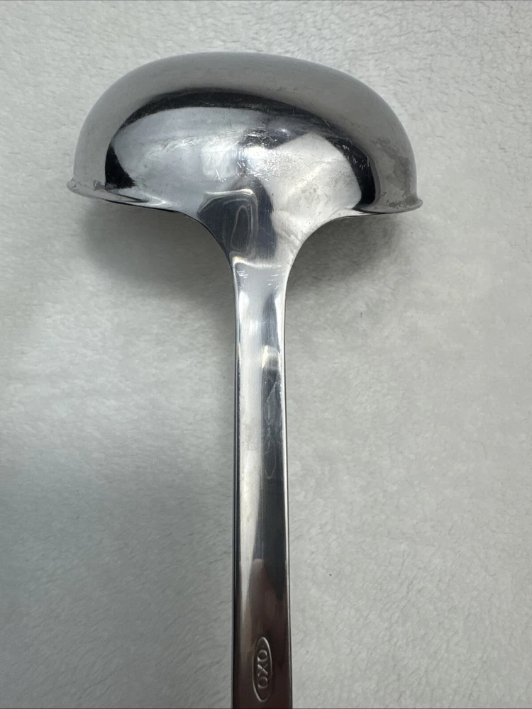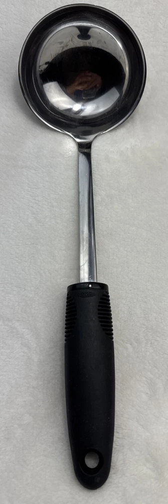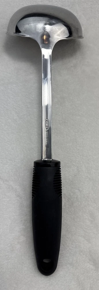 This OXO Good Grips utensil set is crafted from heavy stainless steel, ensuring durability and comfort. The serving ladle is perfect for dishing out soups, stews, and sauces with ease. The set includes a solid spoon, slotted spoon, and fork, all designed with a comfortable grip for easy use. The silver color adds a touch of elegance to any kitchen. This set is perfect for those who want high-quality utensils that are both functional and stylish.