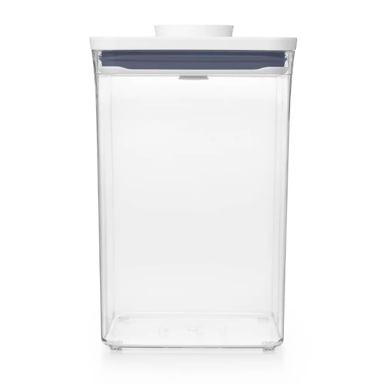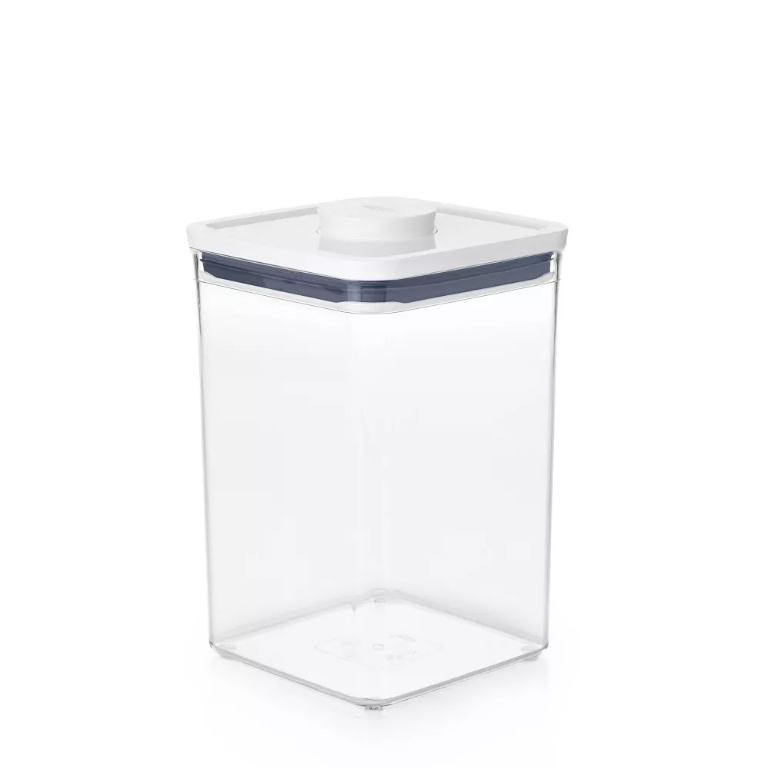 OXO POP Containers’ airtight, space-efficient design keeps dry foods fresh and your pantry organized New shapes, sizes and BPA free, dishwasher-safe construction stack perfectly with all POP Containers and can be customized to fit any space Convenient fill line makes it easy to store staples like cereal, flour, sugar, pasta, rice, coffee, nuts and snacks Push the button to engage the airtight seal. The button doubles as a handle for the lid. For best results, always use the button to open and close.