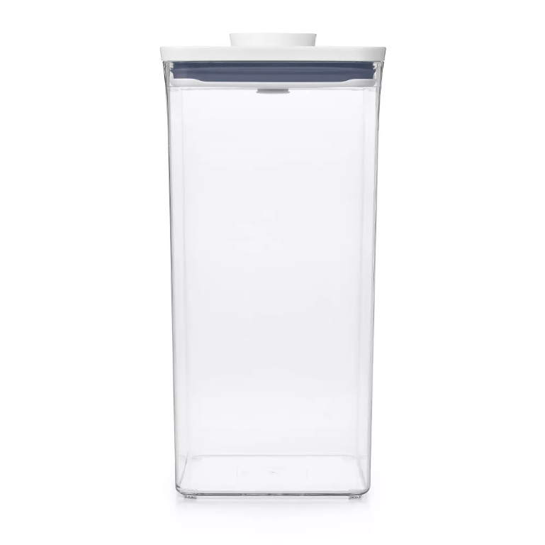 OXO POP Containers’ airtight, space-efficient design keeps dry foods fresh and your pantry organized New shapes, sizes and BPA free, dishwasher-safe construction stack perfectly with all POP Containers and can be customized to fit any space Convenient fill line makes it easy to store staples like cereal, flour, sugar, pasta, rice, coffee, nuts and snacks Push the button to engage the airtight seal. The button doubles as a handle for the lid. For best results, always use the button to open and close.