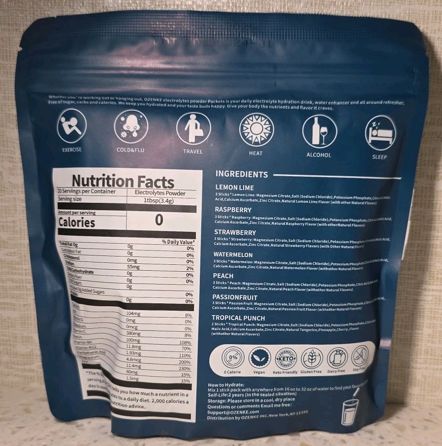 OZENKE Electrolytes Powder Sugar Free Electrolytes Drink Mix Flavor Variety 20 Sticks Exp. Date: 03/23/2027 NEW & sealed