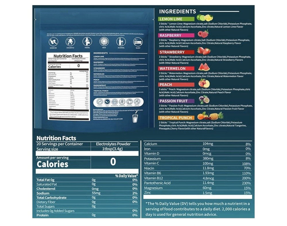 OZENKE Sugar-Free Hydration Powder with Electrolytes Variety Pack 20 Sticks