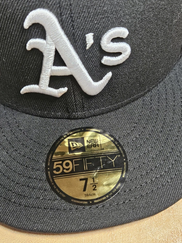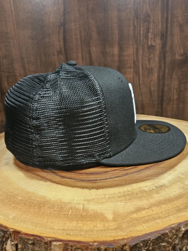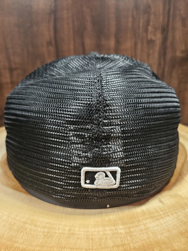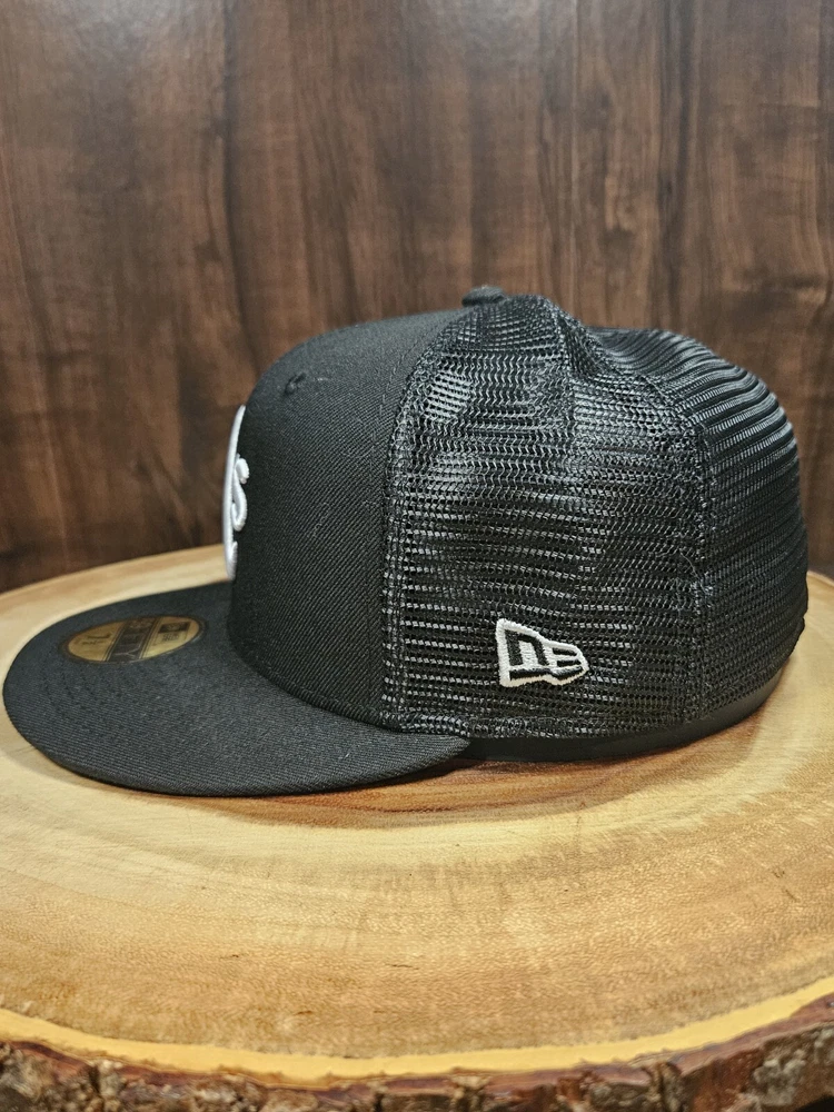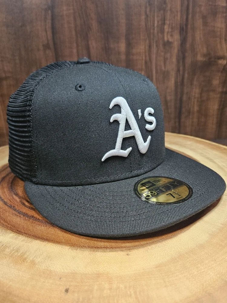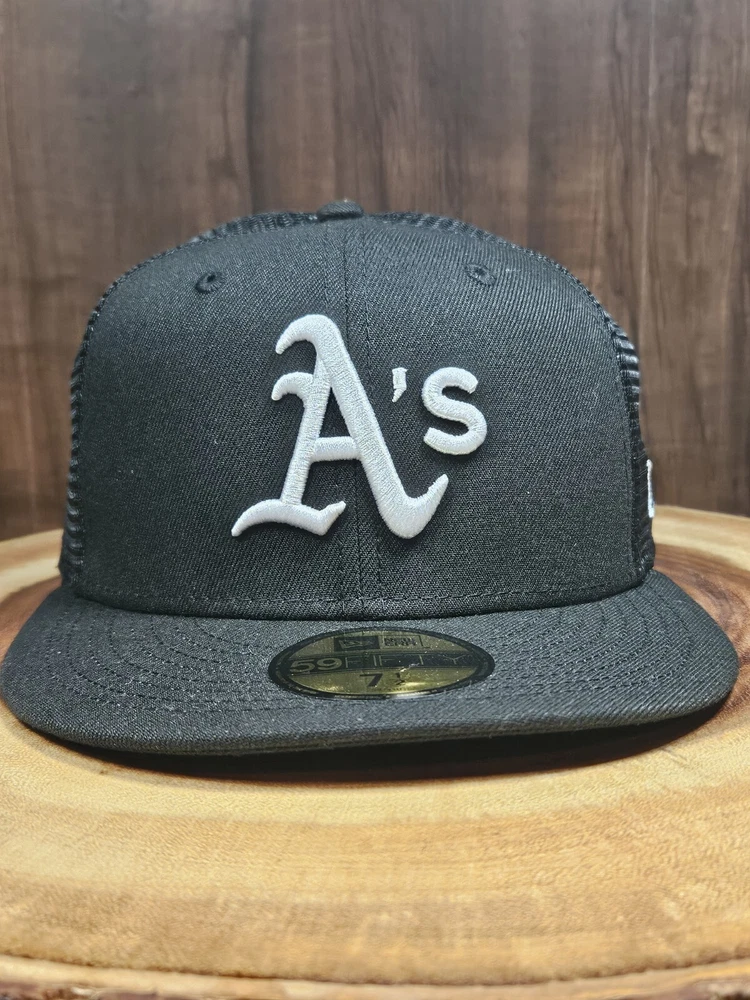 Crafted for the dedicated sports enthusiast, the Oakland A's New Era 59Fifty Trucker Fitted Hat is a versatile addition to any fan's wardrobe. This sleek black cap, sized at 7 1/2, features a solid pattern that exudes a classic, streetwear vibe, perfect for complementing a wide range of outfits, from casual to business casual. The hat's breathable mesh back and fitted design ensure a comfortable fit, making it suitable for various occasions, from a day at the ballpark to a casual outing. The New Era brand guarantees quality and style, while the cap's association with MLB Baseball adds an authentic touch for those who follow the sport.