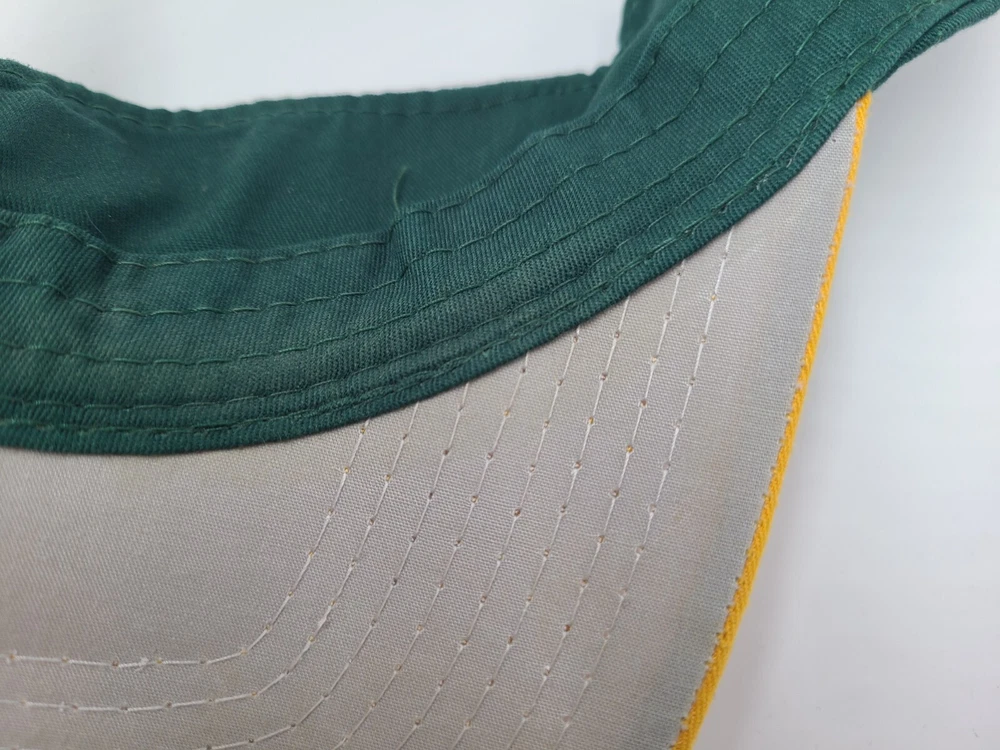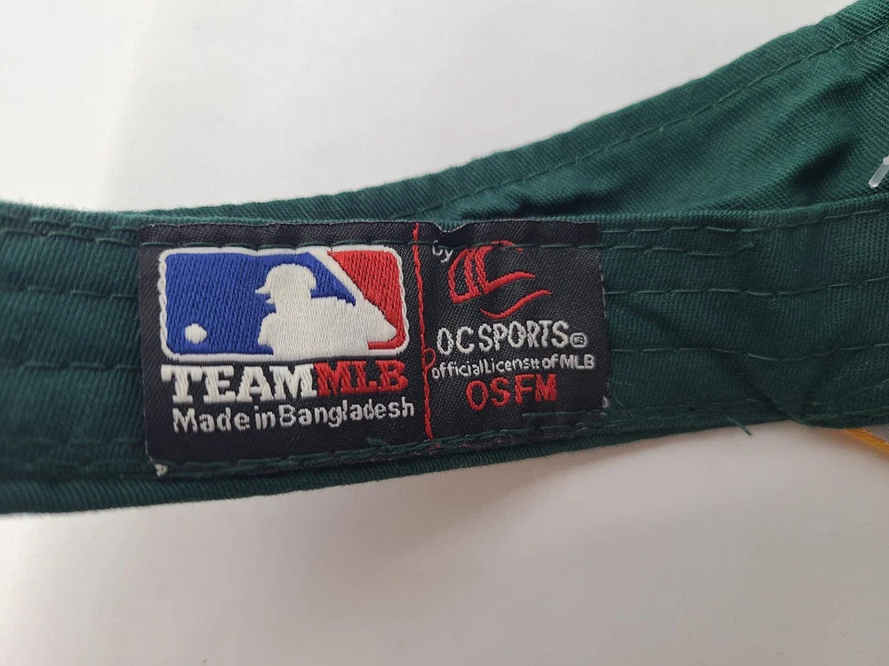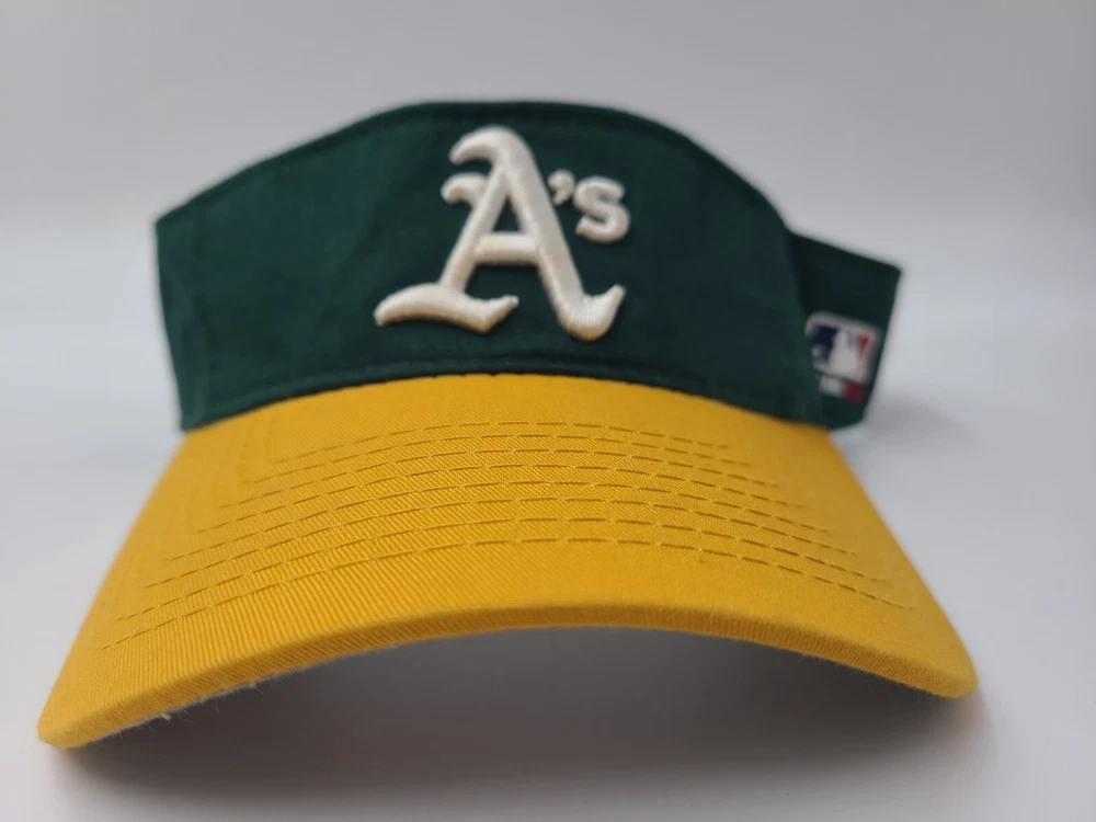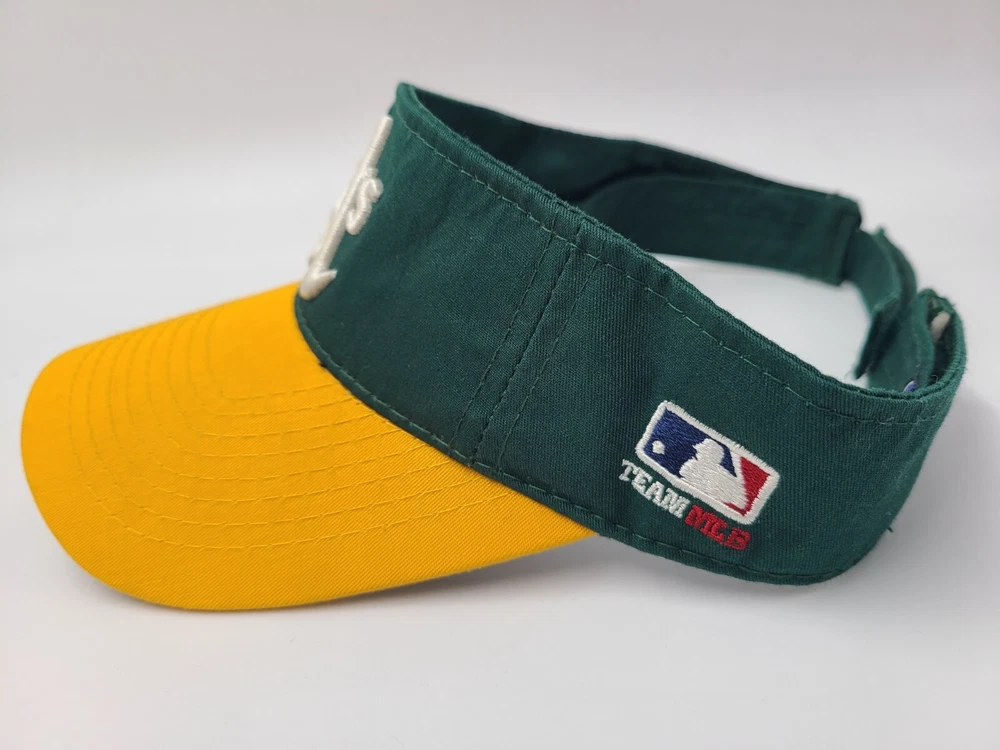 Has some writing and stains underneath the brim as seen in photos. Oakland Athletics A's OC Sports Sun Visor Adjustable Hat Cap MLB Green Yellow. EACH ADDITIONAL HAT PURCHASED IS ONLY $1 ADDED SHIPPING!