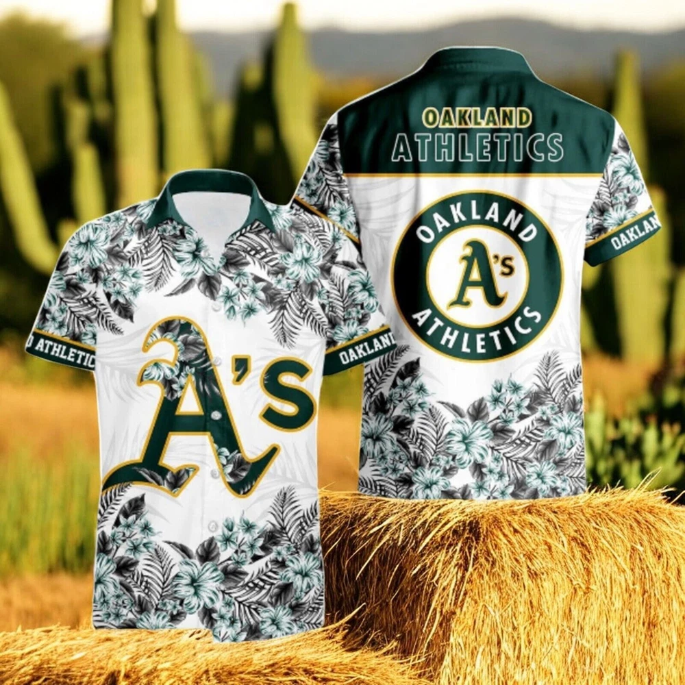 Oakland Athletics Hibiscus Plumeria Flower 3D Printed Hawaiian Shirt