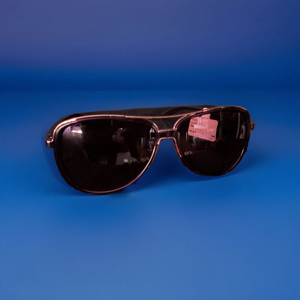 These Oakley Feedback sunglasses feature a stylish rose gold frame with tortoise shell pattern accents. The lenses are polarized and made of polycarbonate with a brown tint. The aviator style sunglasses are lightweight and designed for women. The model number is OO4079-31, with UV400 protection and a temple length of 132 mm, making them ideal for everyday wear with a touch of elegance.