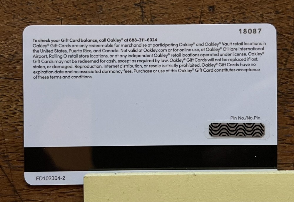 New Gift Card $195 used at any physical Oakley or Oakley Vault location. Probably can't be used online. Physical card. May or may not be deducted from balance saving local state sales tax or VAT, but cannot attest to that. Great gift for sunglasses, athletic wear, eyewear, branded clothing.
