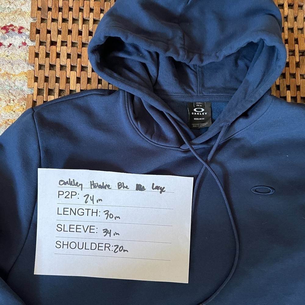 The Oakley Pullover Hoodie in Navy Blue is a stylish and comfortable option for men's activewear. Made from cotton fleece, this hoodie features a solid design with a logo accent, long sleeves, and a pullover closure. The regular fit and hooded design make it perfect for outdoor activities in the winter, fall, or spring. Machine washable and in size Large, this hoodie is a versatile addition to any man's wardrobe.
