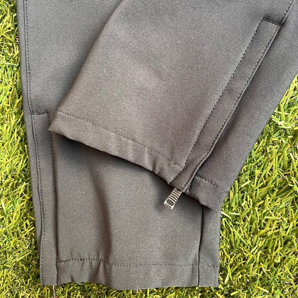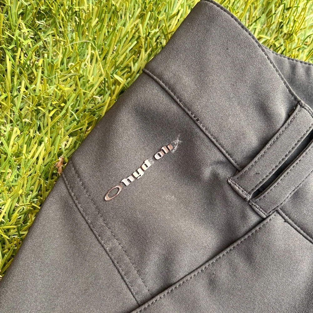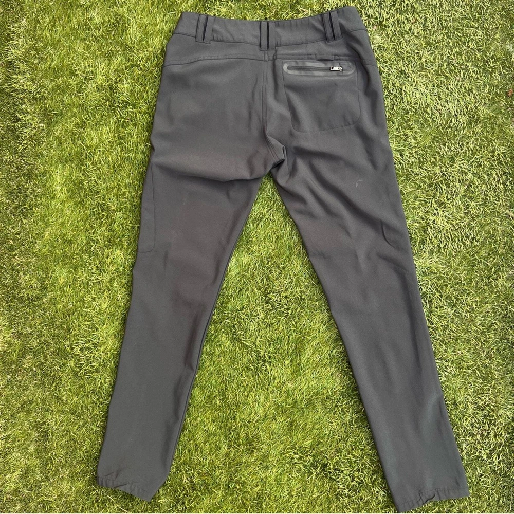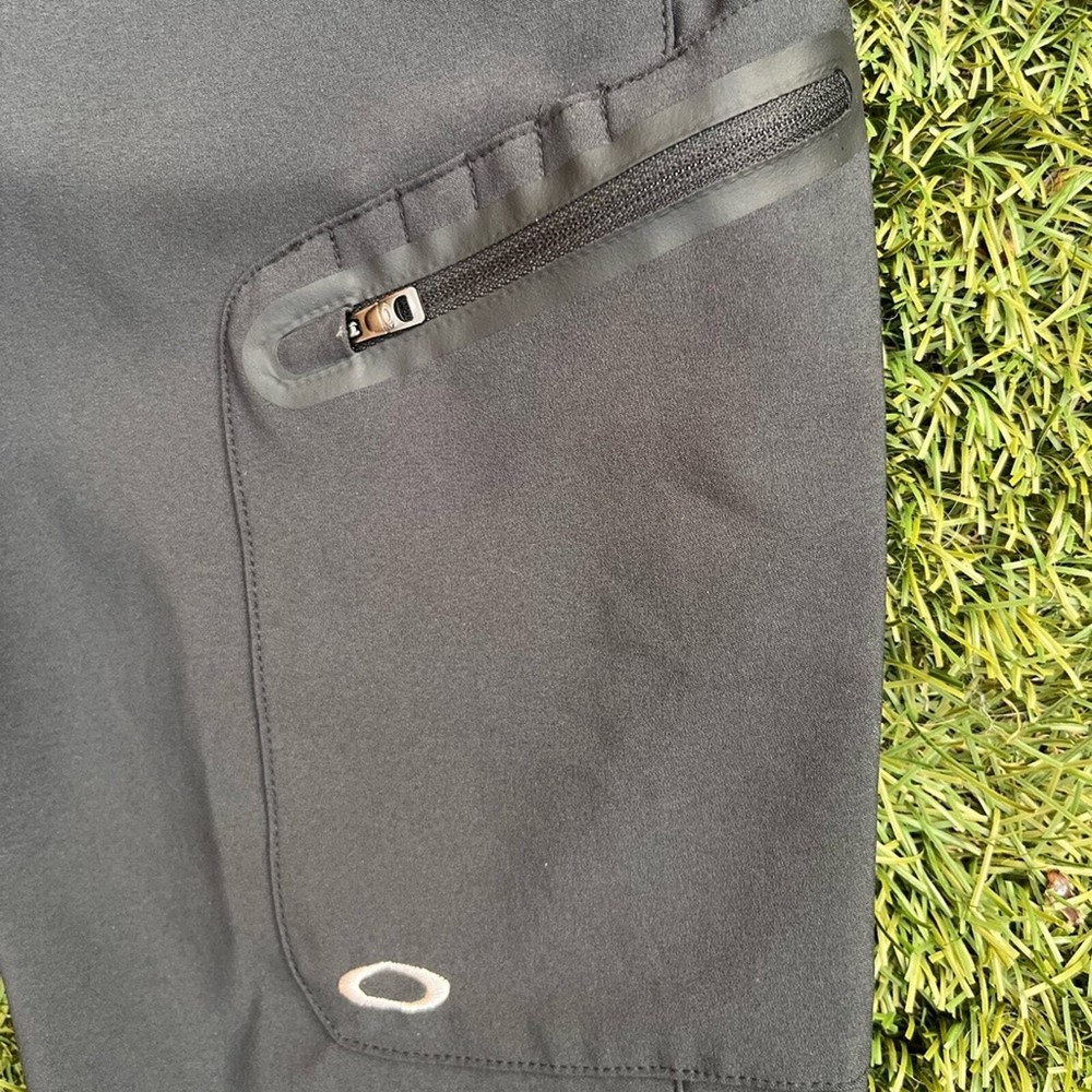 Pre-Owned full length Golf Pants by Oakley Style is the Seirra Golf Pants Color is Charcoal Grey Size 6 in women Measurements: Waist 15.5 inches Rise 8 inches Inseam 31 inches Excellent pre-worn condition. Very clean, no stains, snags, holes or tears. No signs of excessive wash or wear. Zippers and snaps in great condition. The pockets look great, no holes. The only flaw is the graphic of the “hydrolix” near the right hip pocket is trying to peel. Overall great condition, see all of my photos for more details of pants condition. Super amazing utility golf pants, featuring a thigh pocket with tee slots and a zippered pocket for other gear, such ass golf balls or golf gloves. Neutral color to match any polo or athletic shirt you wear out on the course. Water resistant hydrolix material makes these trousers even more versatile, perfect for hiking or camping too!