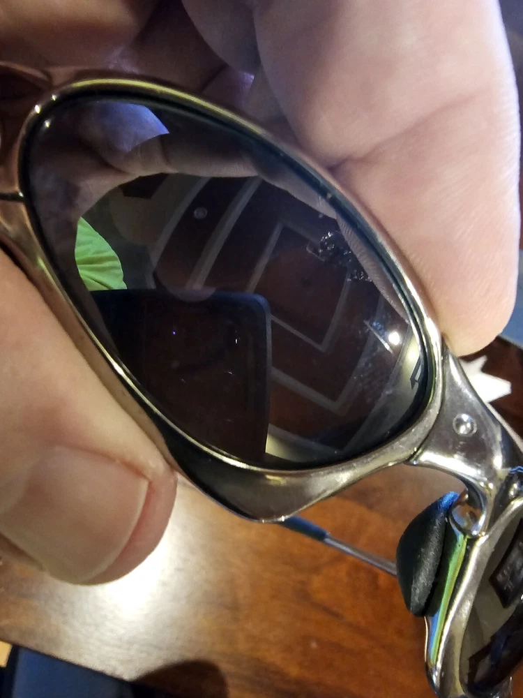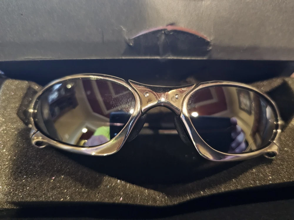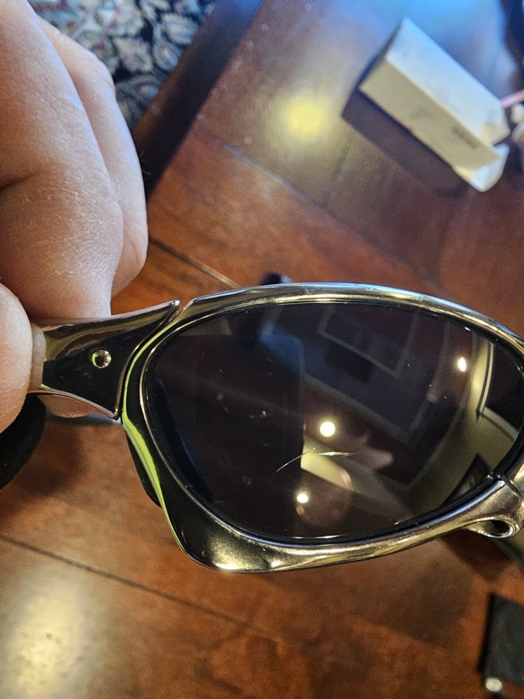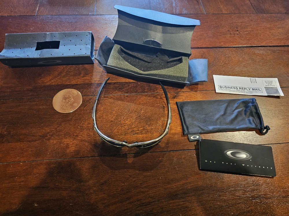 Oakley X Metal Penny Polished Titanium Frame Black Iridium Lens. Original box and coin. Small, superficial scratch on each lens can be seen in photos. Will ship insured with tracking.