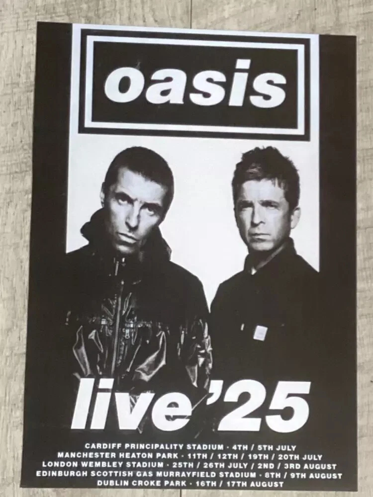 Oasis concert gig poster 2025 live tour Glasgow/Manchester/London/Cardiff/Dublin