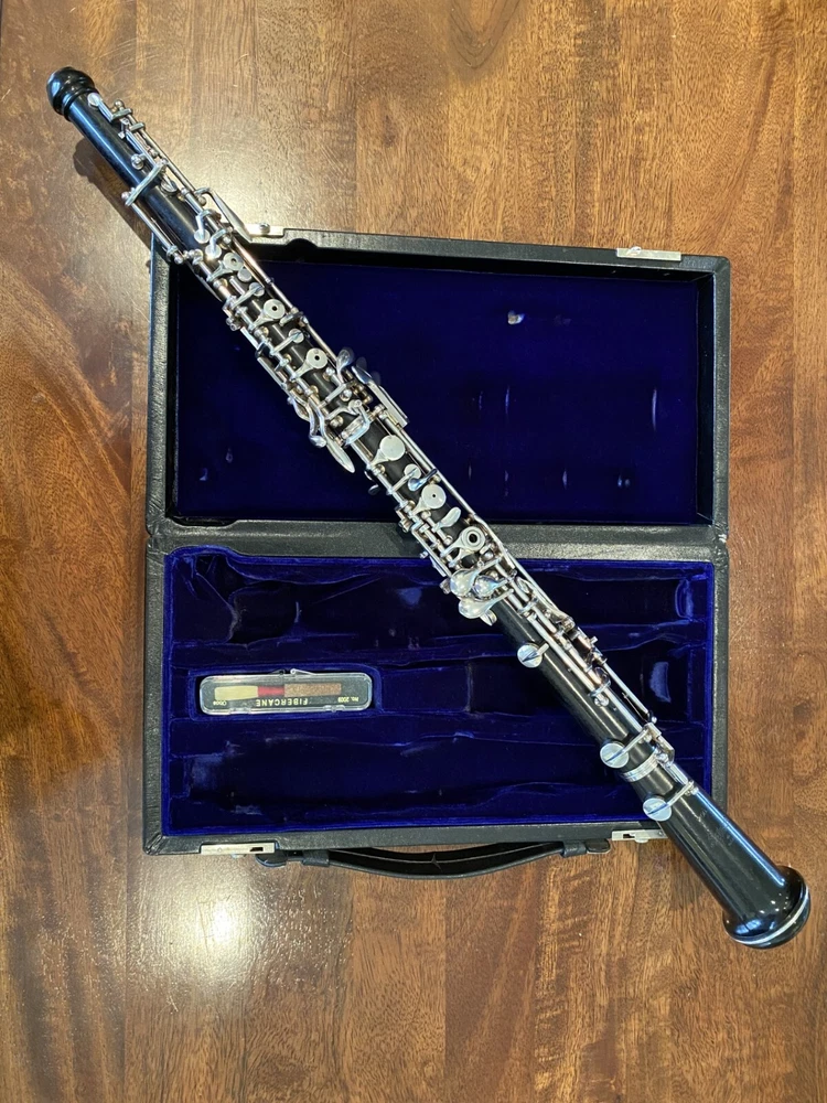 This is the Model 121 oboe by Selmer USA. It is one of the premier step up oboes available. It show cases a Grenadilla wood body and full conservatory key system. If you are a serious oboe student and are looking for a quality step up or are just in need of a great oboe, the Model 121 is a fantastic choice. Oboe is in excellent used condition. Perfect action. Keywork: Silver plated keys Body Grenadilla Wood Key Specifications: Full Conservatory Ab and Bb Trill G#-A Trill Double Ring D#-E Left hand C-D trill Auxilary C Keyed to low Bb Includes case that shows wear.