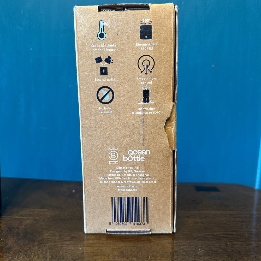 The Ocean Bottle Small Flask in Obsidian Black is a sleek and compact water bottle with a 350ml volume, perfect for camping and hiking adventures. The flask is designed to keep your drinks hot for up to 6 hours, making it ideal for outdoor activities. No leaks, smooth flow control and dishwasher friendly. Open box unused. Thanks for looking!