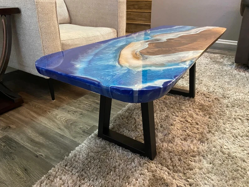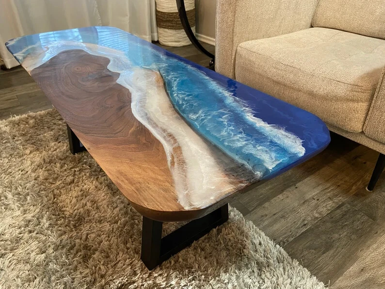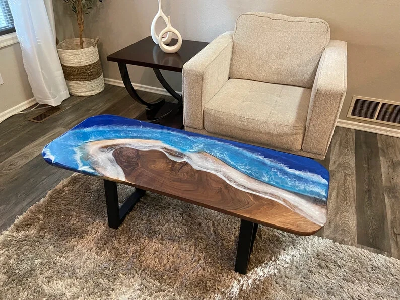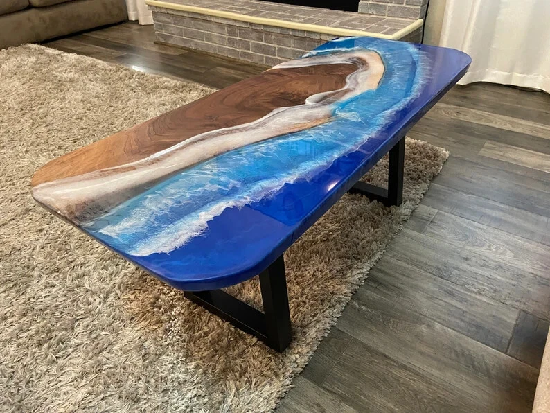 Ocean Epoxy Dining Table, Handmade Furniture, Hallway Interior Furniture Decor