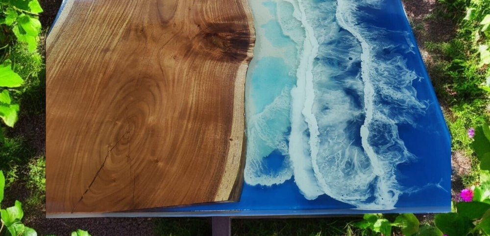 Ocean Epoxy Resin Live Edge Acacia Wood Dining Table Handmade for Living Room