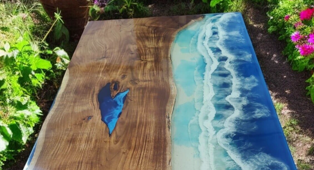 Live Edge Epoxy Dining Table Handmade Artisan Conference Room Furniture Modern Deco