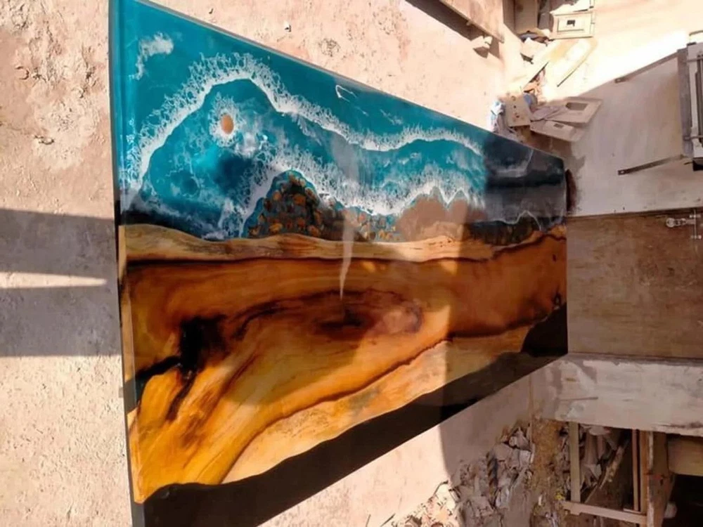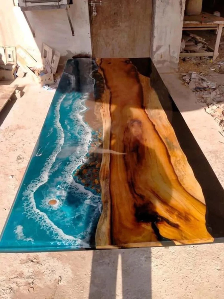 Ocean Epoxy Table Top, Epoxy Coffee Table, Resin River Table, Handmade Furniture