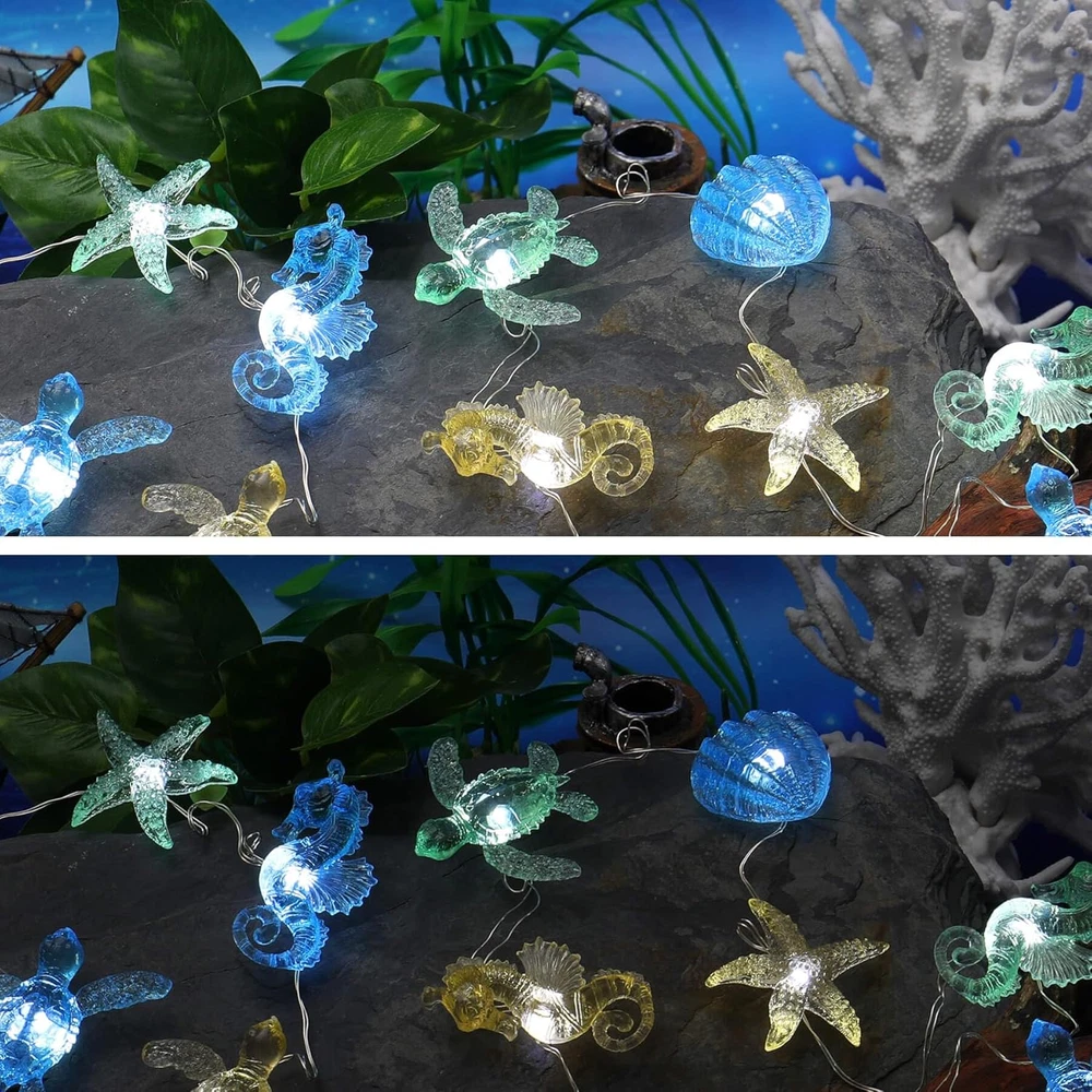 Store New Arrivals Add to Favorite View Feedback Contact Ocean Themed Decorative Lights String of Marine Life Fairy String Lights Coastal Decor 10Ft 30 Leds Battery Operated with Remote Control for Beach Bedroom Decoration Description Item model number SEABA-2023-HXT Light Source Type LED Style Sealife Power Source Battery Powered Number of Light Sources 30 Control Method Remote Theme Coastal Decor Style Number SEABA-2023-HXT Controller Type Remote Control Material Copper Additional Features Water Resistant Package Dimensions 5.28 x 3.46 x 2.6 inches; 7.05 ounces Indoor/Outdoor Usage Outdoor Material Type Copper Light Color Multicolor Water Resistance Level Water Resistant Connectivity Technology USB Special Feature Water Resistant Color Multicolor Wattage 5 watts Indoor Outdoor Usage Outdoor Included Components water resistant battery box Style Name Sealife 【Let The Beauty of Coral Reefs Creatures Light Up Your Life】Turtles, seahorses, starfish, and giant clam. Each icon is carefully designed with rich details. Each one is a work of art with our deepest love to ocean. 【Recognizable and Multiple Usage Scenarios】This copper wire lamp Star is 1.5x1 inch and it is fully light up. People can tell what they are from a distance. And the light it emits is more even and bright. They are the color of ocean water. This is mermaid will choose for her bedroom. Anyone who love ocean and beach will love this light. 【Better Quality and Safe Décor for Everyone】We use 0.45 diameter copper wire compares to 0.38 diameter of old version products, which make our item more durable. This wire will never go hot, it is also water resistant and can even work in very humid environment for a period (Keep USB and battery pack dry). Even if the lamp wire is damaged or broken, there will be no leakage. It can work safely near children and pets. 【Remote Control Provides Timer and Flicker Function】6 Hrs build-in timer provides automatic shut off (6 hours on and 18 hours off and 6 hours on again), plus brightness dimmer and flicker function, easy to use and save energy. The remote also offer different flicker mode and speed. You can easily control the lights even when it is out of your reach. 【Battery Operated】 The water resistant battery box allows you to use this product flexibly anywhere, we recommend using rechargeable batteries. Islands and beaches are always my first choice for vacation. The endless blue sea level always calms my heart. I also like free diving. Below sea level is like another world, which makes me forget all the unhappiness and boredom in life. Countless kinds of fish and turtles are like angels in this heavenly world. For some reason, my young son is also obsessed with the world. He loves all the creatures in the ocean for no reason. Therefore, it has become a great pleasure for me to observe the creatures in this world and bring their cutest forms to life. I started from small sea life and poured all my love for this blue world. I hope to share this feeling with you through my design. ABOUT US We offer the best prices around on high quality products. Our E-store includes media such as books, movies, music and games while offering electronics, toys, sporting apparel, clothing, tools, general home, garden items and more. SHIPPING We are always working hard to ensure your package arrives as soon as possible. Please understand that some factors like weather, high postal traffic, and the performance of shipping companies are outside of our control. We offer free shipping to the lower 48 states and ship within 2 business days of payment, usually sooner. We do not accept P.O. Boxes. Please provide a physical address. For shipping outside of the continental USA, we only use eBay's Global Shipping Program.The item is shipped to KY and then sent to the rest of the world. International customers are responsible for all duties and taxes. Continue to check out in order to calculate costs for shipping the item to your country. Messages regarding eBay's Global Shipping Program MUST be directed at eBay EXCLUSIVELY. RETURNS We offer a 30-Day Return Policy on items which you are not completely satisfied with. You have the option for a full-refund or an exchange of the item. No returns are available on items shipped outside of the USA. PAYMENT We accept PayPal. CONTACT US This page content is yet to come Please ad us to your favorite seller and visit again later Thank You CUSTOMER SATISFACTION We try our very best to make sure every customer is completely satisfied. If there's a problem, message us! We're happy to help. WE ACCEPT Copyright © 2021 AutoDS. | All Rights Reserved