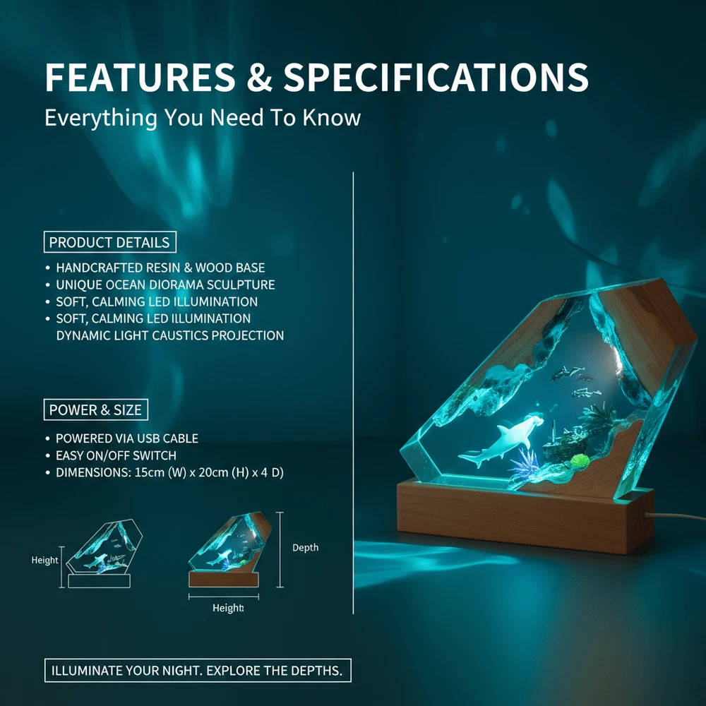 Elevate your home or office decor with this premium 6-inch Ocean Wood Resin Lamp . Crafted with exquisite wood and resin, each piece features a unique ocean-inspired design that adds a touch of elegance and tranquility to any space. Key Features: Multifunctional & Adjustable Glow: Easily adjust brightness to create the perfect ambiance for your living room, bedroom, or workspace. Premium Quality Materials: Made from high-quality wood and resin for durability and long-lasting beauty. Versatile Decor Piece: Perfect for bedside tables, office desks, shelves, or as a centerpiece in any room. Perfect Gift Idea: Ideal for birthdays, housewarmings, holidays, or any special occasion. Transform your space with a luxurious, calming, and modern decorative lamp that blends style and functionality effortlessly. Each lamp is unique , making it a statement piece and a conversation starter. Specifications: Size: 6 Inches Material: Wood + Resin Light Source: LED (adjustable brightness) Suitable for: Living Room, Bedroom, Office, Bedside Table Add this premium Ocean Wood Resin Lamp to your collection and enjoy a soft, soothing glow that enhances any room instantly.