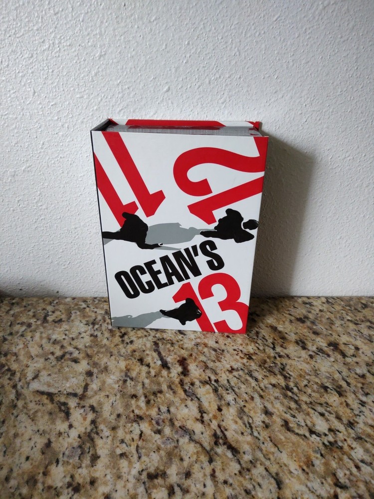 Oceans Eleven + Twelve + Thirteen Collection Box Set (DVD). Very good condition! Ocean's Eleven is a 2001 American heist comedy film directed by Steven Soderbergh and written by Ted Griffin. The first installment of the Ocean's franchise, it is a remake of the 1960 Rat Pack film of the same name. Ocean's Eleven features an ensemble cast, including George Clooney, Brad Pitt, Matt Damon, Don Cheadle, Andy García, Bernie Mac and Julia Roberts. The story follows friends Danny Ocean (Clooney) and Rusty Ryan (Pitt), who plan a heist of $160 million from casino owner Terry Benedict (García), the lover of Ocean's ex-wife Tess (Roberts). Upon release, the film was a success at the box office and with critics; it was the fifth highest-grossing film of 2001, with a worldwide gross of $450 million. Soderbergh directed two sequels, Ocean's Twelve in 2004 and Ocean's Thirteen in 2007, which make up the Ocean's Trilogy. Ocean's 8, a spin-off with an all-female lead cast, was released in 2018. Ocean's Twelve is a 2004 American heist comedy film directed by Steven Soderbergh. The second installment of the Ocean's franchise and the sequel to Ocean's Eleven (2001), the film stars an ensemble cast consisting of George Clooney, Brad Pitt, Matt Damon, Catherine Zeta-Jones, Andy García, Julia Roberts, Don Cheadle, and Bernie Mac. The film was released in the United States on December 10, 2004, and received generally mixed reviews from critics. It was a financial success, grossing $362 million and becoming the tenth-highest-grossing film of 2004. It is followed by Ocean's Thirteen (2007). Ocean's Thirteen (also written as Ocean's 13 ) is a 2007 American heist comedy film directed by Steven Soderbergh. It is the third installment in the Ocean's franchise, the sequel to Ocean's Twelve (2004), and the final film in the Ocean's Trilogy. The entire male cast reprised their roles from the previous installments, with Al Pacino and Ellen Barkin joining the cast, but both Julia Roberts and Catherine Zeta-Jones didn't return. Filming began in July 2006 in Las Vegas and Los Angeles, based on a script by Brian Koppelman and David Levien. The film was screened as an Out of Competition presentation at the 2007 Cannes Film Festival, and was released on June 8, 2007 in the United States. The film was well-received and grossed $311 million worldwide. Shipped with USPS Media Mail.
