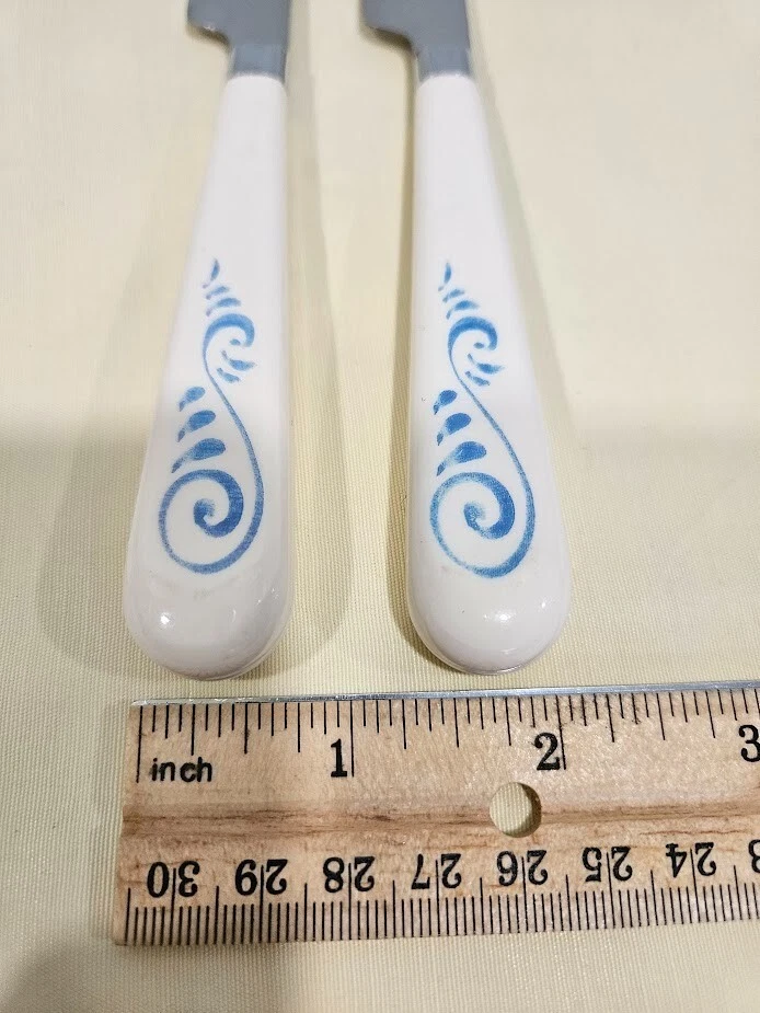 Oceanview Corning Corelle Dinner Knives set of 2 white, blue design 8 1/2 long