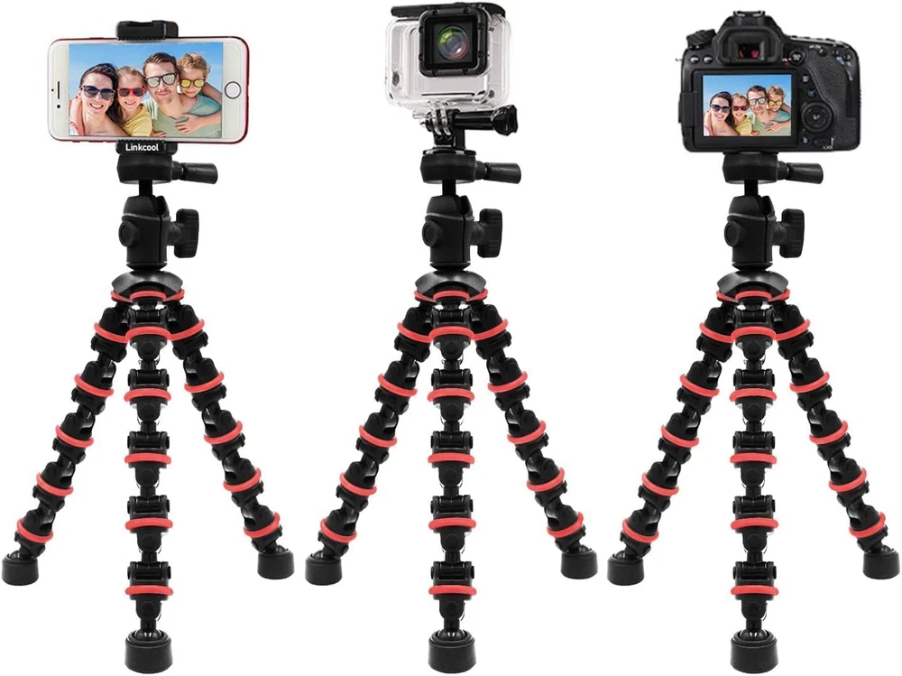 Phone Tripod, Linkcool Octopus Tripod with Wireless Remote Phone Holder Mount Use as iPhone Tripod, Cell Phone Tripod, Camera Tripod, Travel Tripod,Tabletop Tripod for iPhone Gopro Product Description: The Linkcool Octopus Tripod is a versatile and portable tripod designed to enhance your photography and videography experience. Perfect for use with smartphones, GoPro cameras, and other compact devices, it features a wireless remote for hands-free control and a flexible, adjustable design. Whether you're capturing photos, shooting videos, or streaming live, this tripod is the ideal tool for stable, creative shots on the go or on a tabletop. Features: Universal Compatibility: Works with a wide range of devices, including iPhones, smartphones, GoPro cameras, and other compact cameras, making it a versatile tool for various photography needs. Wireless Remote Control: Comes with a wireless remote, allowing you to take photos or videos from a distance without needing to touch your device. Flexible Octopus Legs: The tripod features flexible, bendable legs that can be adjusted to wrap around objects or be used on uneven surfaces, providing stability in various environments. Portable and Lightweight: Compact and easy to carry, this tripod is perfect for travel, outdoor activities, and on-the-go photography. 360° Rotation: Allows you to easily adjust your camera to any angle, ensuring you capture the best shots from any direction. Tabletop and Full-Length Use: Can be used both as a tabletop tripod for stable surface shots or extended for use as a full-length tripod for full-body shots. Durable and Stable: Made from high-quality materials to provide a sturdy, reliable support for your devices, reducing the risk of shaky footage. Easy Setup: Quick to assemble and simple to use, making it perfect for beginners and experienced photographers alike.