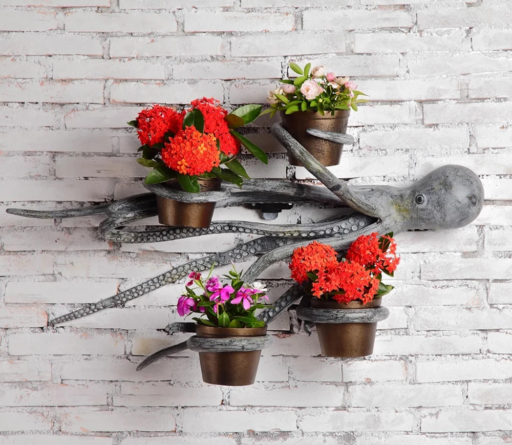 Measures 16 X 31.5 X 11.5 Inches Made Of Aluminum Unique Decorative Item Makes A Great Gift Our eBay Store About Us Add to Favorite Sellers Octopus Wall Hanging Planter Holder W/ 4 Pots Measures 16 X 31.5 X 11.5 Inches Made Of Aluminum Unique Decorative Item Makes A Great Gift Introducing the captivating Octopus Wall Hanging Planter Holder with 4 Pots, an exquisite blend of functional beauty and marine allure. Measuring 16 inches in height, 31.5 inches in width, and 11.5 inches in depth, this piece seamlessly captures the essence of the ocean's mysteries. Crafted from enduring aluminum, its hand-painted finish adds a unique touch to its design, showcasing intricate artistry. The detailed portrayal of an octopus holding four pots underscores the skilled craftsmanship involved. This wall hanging planter holder stands as a thoughtful and versatile gift choice, suitable for various occasions. Its dimensions make it adaptable to diverse spaces, serving as both a decorative masterpiece and a functional plant holder. Whether for nature enthusiasts, lovers of marine decor, or individuals who appreciate the fusion of art and gardening, the Octopus Wall Hanging Planter Holder with 4 Pots offers a remarkable and meaningful present, embodying both artistic finesse and the delight of nurturing plants in an ocean-inspired setting. Product Details Color Gray Height 16 Length 31.5 Weight