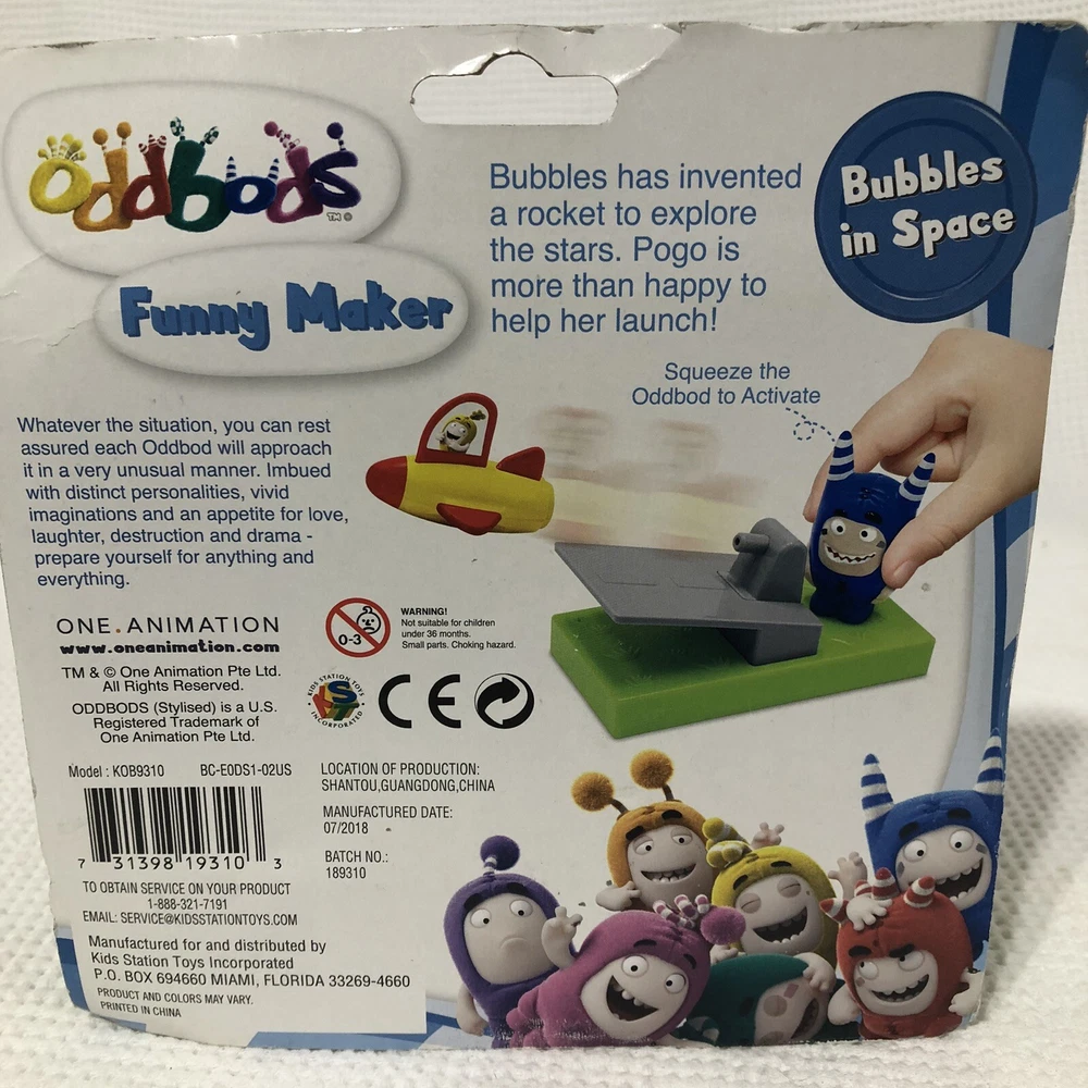 Take your child on a space adventure with the Oddbods Action Figure Bubbles and Pogo "Bubbles In Space" playset. This toy is perfect for kids aged 3 and above who love the Oddbods TV show. The set includes a blue space ship made of durable plastic material and an animator doll of the beloved character Pogo. The playset is boxed and comes with a variety of items to enhance the play experience. The Oddbods Action Figure Bubbles and Pogo "Bubbles In Space" playset is an original and licensed reproduction of the popular animated series. It is a perfect addition to any child's toy collection and will provide hours of imaginative play. Get this hard-to-find toy today and let your child's imagination take them on a thrilling space adventure!