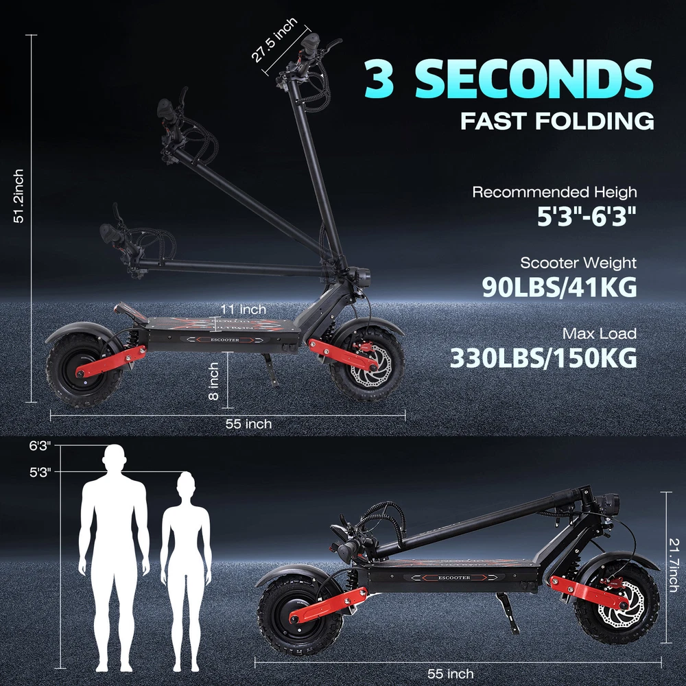 Product Detail: Note:If you have any questions, please contact us before open any case, we promise will solve the problem for you. Thanks! Ultron electric scooter adults, established in 2016, is a factory-focused seller primarily engaged in wholesale operations. The company's products have garnered significant attention in the market, especially its electric scooter series, which has gained popularity among consumers. By searching for "Ultron Scooter" on platforms such as YouTube, Tk, FB, and INS, you can find numerous review videos about the brand. About this item 【Big LCD Display & Desigh Concept】This electric scooter has a large LCD display that shows real-time speed (MPH). Such as battery level display, TRIP/ODO/SPEED/, 3 gear modes and cruise indicator.The Adjustable seat can be installed by yourself as needed and comes with instructions and tools. It features an aluminum alloy frame that is recyclable and lightweight. More durable in harsh weather and road conditions. 【Peak 6000W Dual Motor】Electric scooter for adults is powered by dual high-speed peak 3000W powerful motors. A rider weighing 120 lbs (55 kg) can achieve 52 MPH and 50 miles when the battery is fully charged. Sport scooter is a great public transport, this e-scooters is great for commuting to and from work each day. 【1440WH Large Battery】Adult electric scooter features a 1440WH high-capacity battery and reduces charging time to 3-5h with 2 chargers, fully recharges in 5-8 hours with 2 chargers. It has a range of up to 50 miles and an intelligent BMS protection system avording overcharging, overheating etc.The Max Load of this scooter is up to 330 LBS. 【Dual Hydraulic Brakes & EBAS】Our electric scooter is designed for enhanced safety. EBAS and dual hydraulic brake enhances scooter safety, improving the dual braking performance to provide riders with better overall handling. Dual Suspension provides a smoother driving experience and improving comfort. 【360°Light System & 11" Off-road Tires】Adult electric scooter with 11-inch off-road tires traverses a variety of terrain including mountains, beaches, rocky surfaces, and even urban jungles. Dual shock absorber for less bumps on rough roads. Including headlights, colorful side lights, turn signals, and brake lights, ensuring that you can always see & be seen at night for all-around safety. 【Warranty & Service】The electric scooter is 90% assembled so you don't have to waste time with complicated assembly. The seat can be installed by yourself as needed and comes with instructions and installation tools. All electric scooters in the store come with a 200-days warranty.please feel free to contact us, We will reply you within 24 hours and do our best to solve your question. Descriptions: Motor: 60V 6000W(3000*2 dual motor) Battery : 1440WH Charging Time: dual charger 5-8H Max Climbing angle: ≤35-40° Max Speed & Range : 52MPH/50Miles Wheel Size : 11Inch Tubeless Tire Brake: Dual Hydraulic Brake Scooter Weight: 40KG/88lbs What package includes? 1 × electric scooter 1 × handlebar bag 1 × seat & pump 1 × tool & mannual 2 × chargers & keys Note: 1. Please allow minor deviation due to manual measurement. 2. Due to the difference between different monitors, the picture may not reflect the actual color of the item. 3. Communication is the best way to solve the problem. If you have any problems after purchasing, please contact us in time, before opening return or case. Payment: We accept PayPal ONLY currently. Payment must be made within 3 business days. Shipping: 1. Item will be shipped within 1-5 business days from CN Stock or US Stock according to the item location. 2. Sometimes the ship date will be delayed due to a shortage. We will inform you via message. 3. Please leave available address and phone # in delivery information. Seller are not responsible for wrong address. 4. Please indicate your personal requirement such as colors, packages, value of declaration etc. at PayPal's message when make payment. 5. We will NOT responsible for any delay during delivery including but not limited to customs postage checking, strike, force measure etc. Customs Declaration: Import duties, taxes and charges are not included in the item price or shipping charges. These charges are the buyer’s responsibility. Please check with your country’s customs office to determine what these additional costs will be prior to biddingying. Return & Refund: Returns are accepted within 30 days. Please read the item description and check the pictures carefully before bidding. Return or refund is available only if item DOA or there's error in item description causing the item not fitting your need. In such cases, seller pays for all related shipping cost if any. Returns are also acceptable if buyer purchased this by mistake and item still in good condition for reselling. Buyer is responsible for all related shipping cost. Feedback: As long as you are happy with your purchase, please kindly leave us for it is very important for our store performance. If there is any problem with your order, please contact us and give us a chance to resolve your problem Before leaving us a negative feedback.