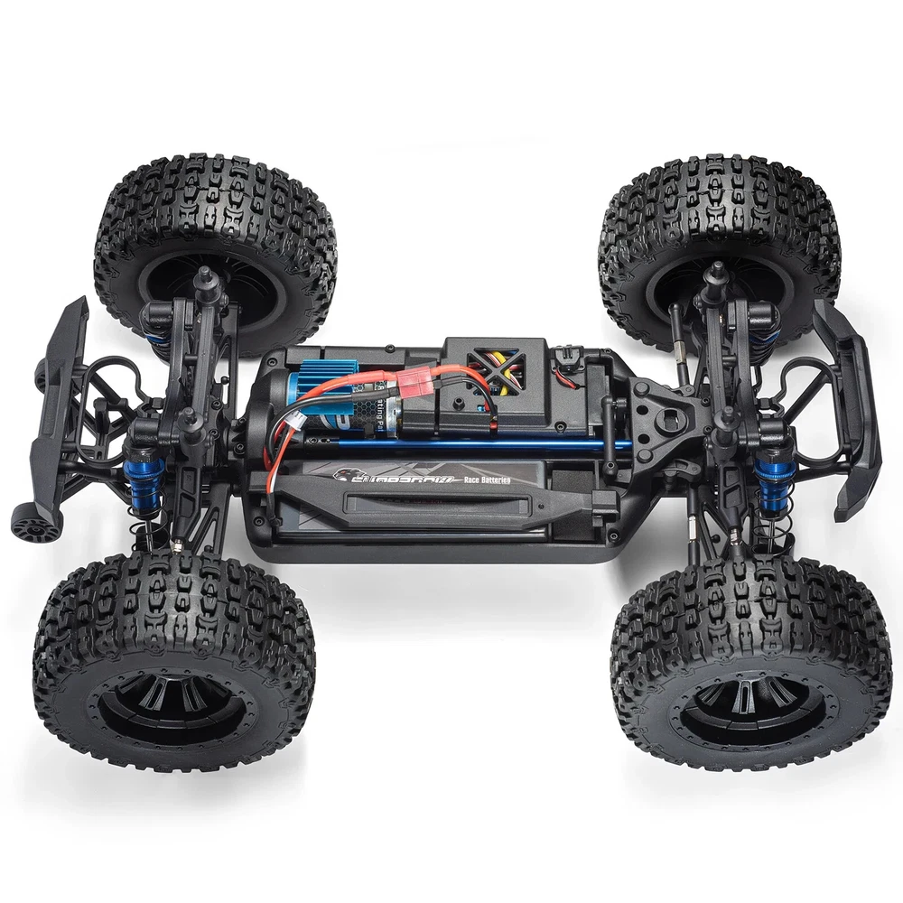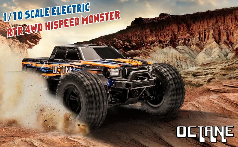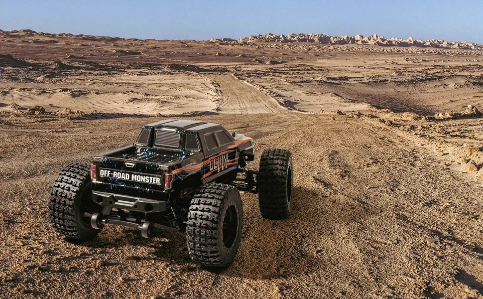 Feature: 1. The bodyshell uses the PC material, and the appearance shows more realistic. 2. All the electrical components is splash-proof. And the transmitter uses the FS new 2.4G anti-runaway 4CH G4P standard version. 3. Integrated screw-free chassis design, gears and electronic wiring concealed layout , simple and beauty appearance, easy to disassemble and anti-dust. 4. All-bearings, front and rear adjustable link, front and rear differential box use metal gears and anti-oil leakage seal design. 5. 5.8mm aluminum central metal driveshaft, steel main gear with anti-slipper buffer and fully sealed dust cover. 6. double-pulley rear head-up wheel is standard and more entertaining. 7. Metal adjustable oil-pressure shock absorber, with the shock spring having anti-falling fender and adding shock ball-end protection cover. 8. 85mm wheels with all-terrain 130mm tires, could well match the Monster Truck performance features, and the chassis is high enough to easily conquer different rugged roads and do higher and longer jump. Length: 440mm Width: 302mm HEIGHT: 190mm Wheel Base: 280mm Ground Clearance:40mm Weight: 2.46kg Wheels:130*52mm Gear Ratio: 1:9.88 Servo: 15KG Radio:2.4G Motor:RC550 ESC:Hobbywing 60A Battery: 7.4v 3500MAH What’s In The Box: 1/10 EP Truck 2.4GHz Transmistter Manual Charger Suspension Adjustment Ring