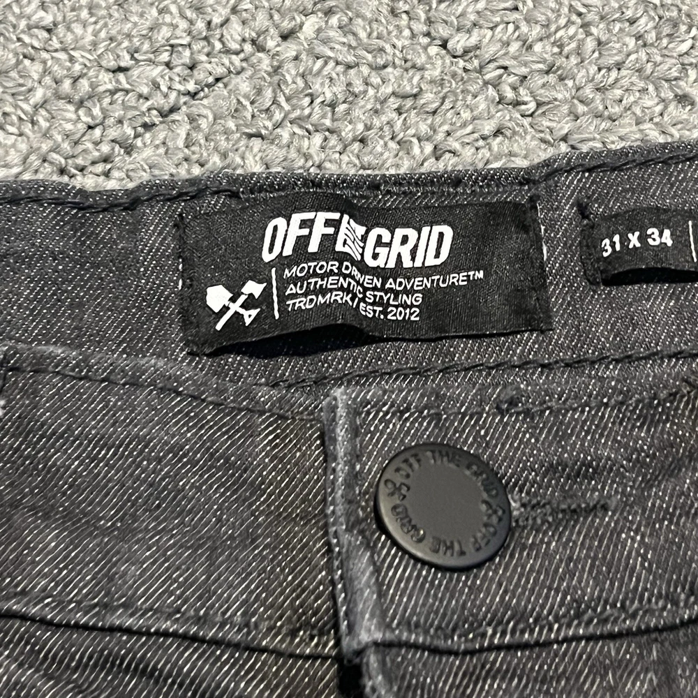 Off The Grid Jeans Mens 31x34(32) Black Hideout 2.0 Pant Heavyweight Denim Work See measurements for accurate fit Inseam Inseam 32 inches Rise 9.5 inches Waist 15.1 inches across Measurements are done flat lay