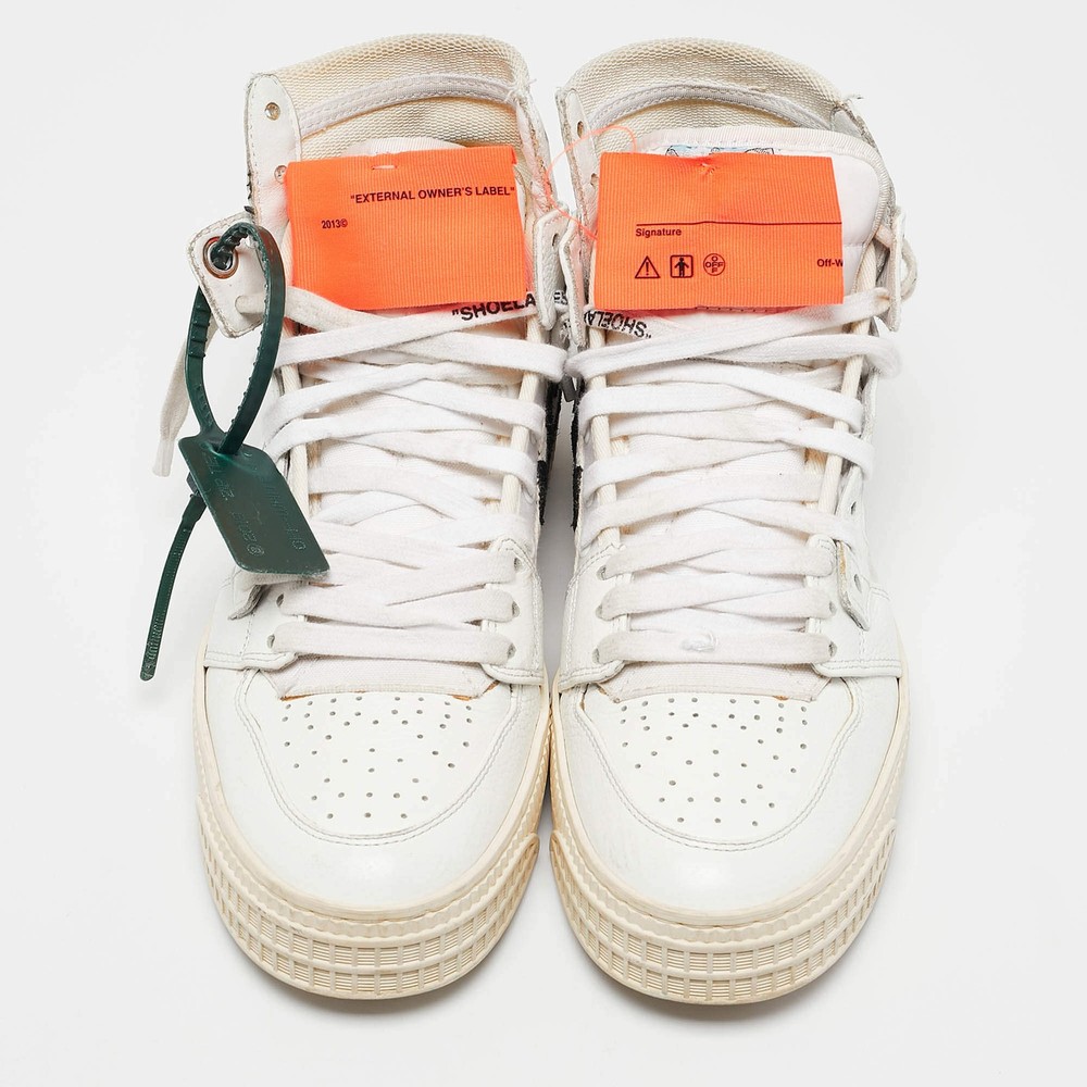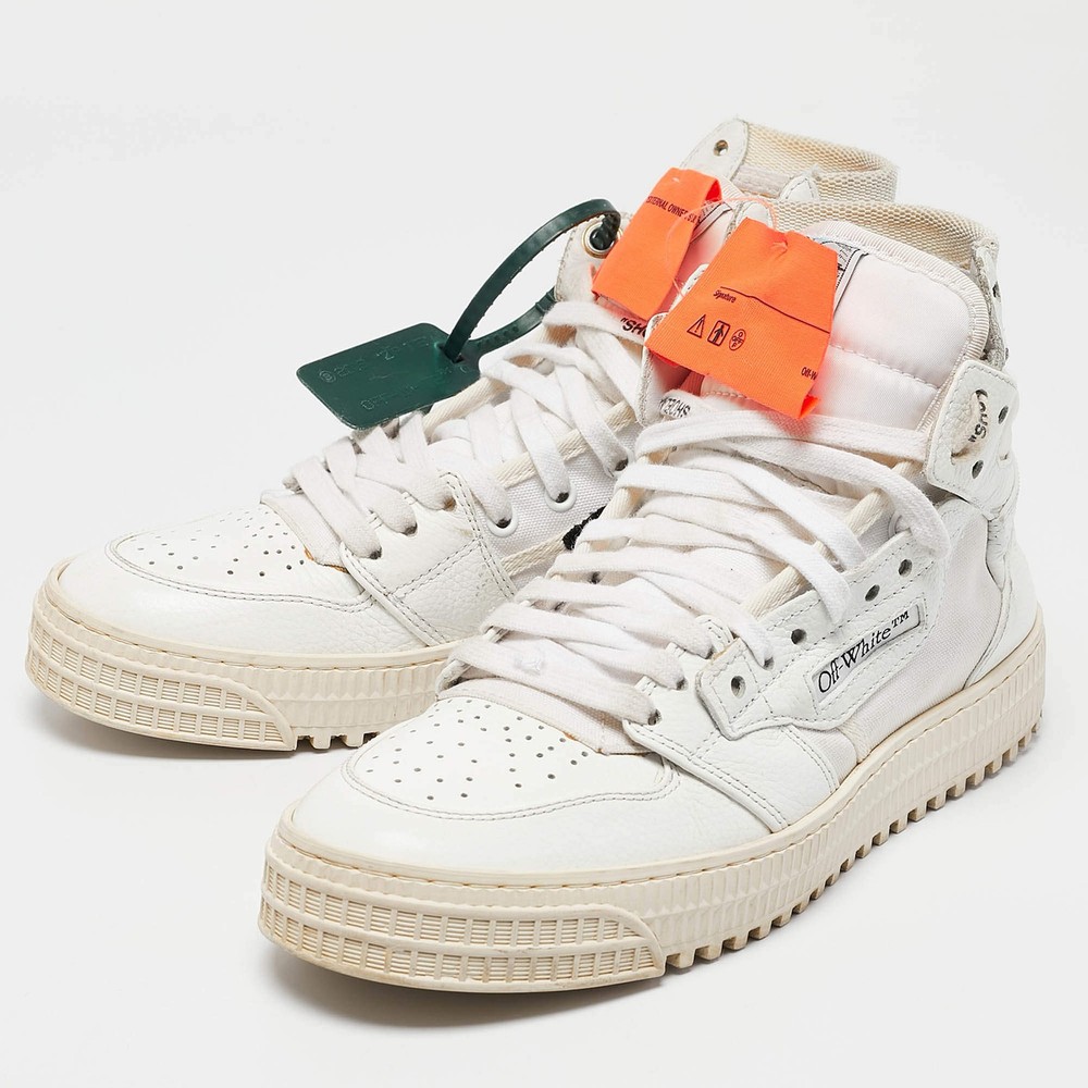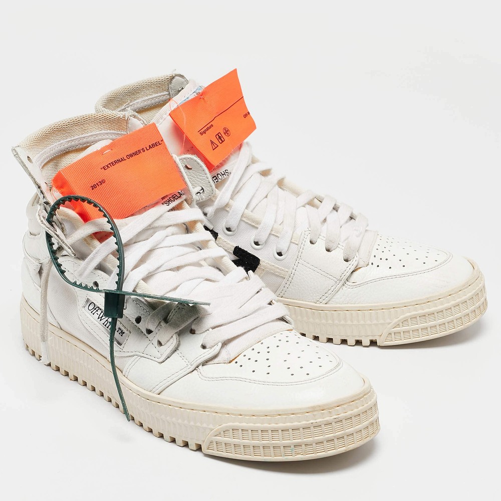 Our eBay Store About Us Contact Us Add to Favorite Sellers OffWhite 3.0 Off Court Size 39 White Canvas and Leather High Top Sneakers Coming in a classic silhouette, these designer sneakers are a seamless combination of luxury, comfort, and style. These sneakers are designed with signature details and comfortable insoles. Product Details Brand Off-White Color White Includes The Luxury Closet Packaging Outsole Length 29 cm Outsole Width 10 cm Size 39 Certified by The Luxury Closet This item has gone through a detailed authentication process overseen by our experts. We offer a lifetime guarantee of authenticity on all our items. How We Check The in-house team of experts at The Luxury Closet is highly trained to verify the authenticity and the condition of the luxury products. They ensure that only 100% authentic items are put on sale.The evaluation process is unique with its own mix of assessment criteria and differs according to the category. Each item is evaluated based on the following combination of hallmarks, hardware, stitching, symmetry, material, craftsmanship, stamping, codes, hologram stickers, and packaging. Our authenticators also check if the items have been modified or amended (e.g., aftermarket diamonds, replaced batteries, repaired bags, etc.) International Buyers Import duties, taxes and charges are not included in the item price. These charges are the buyers responsibility. Please check with your country’s customs office to determine what these additional cost will be prior to buying.