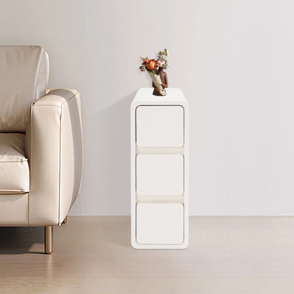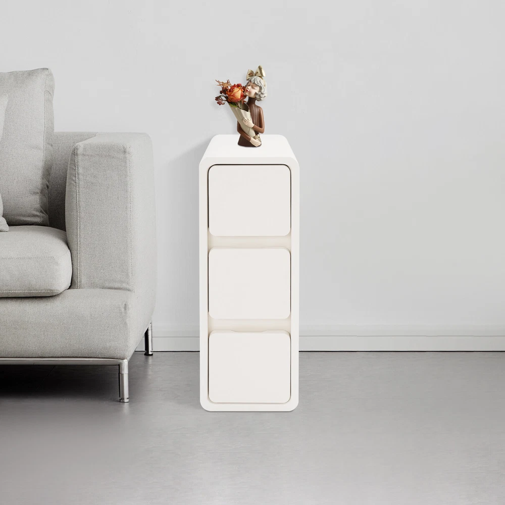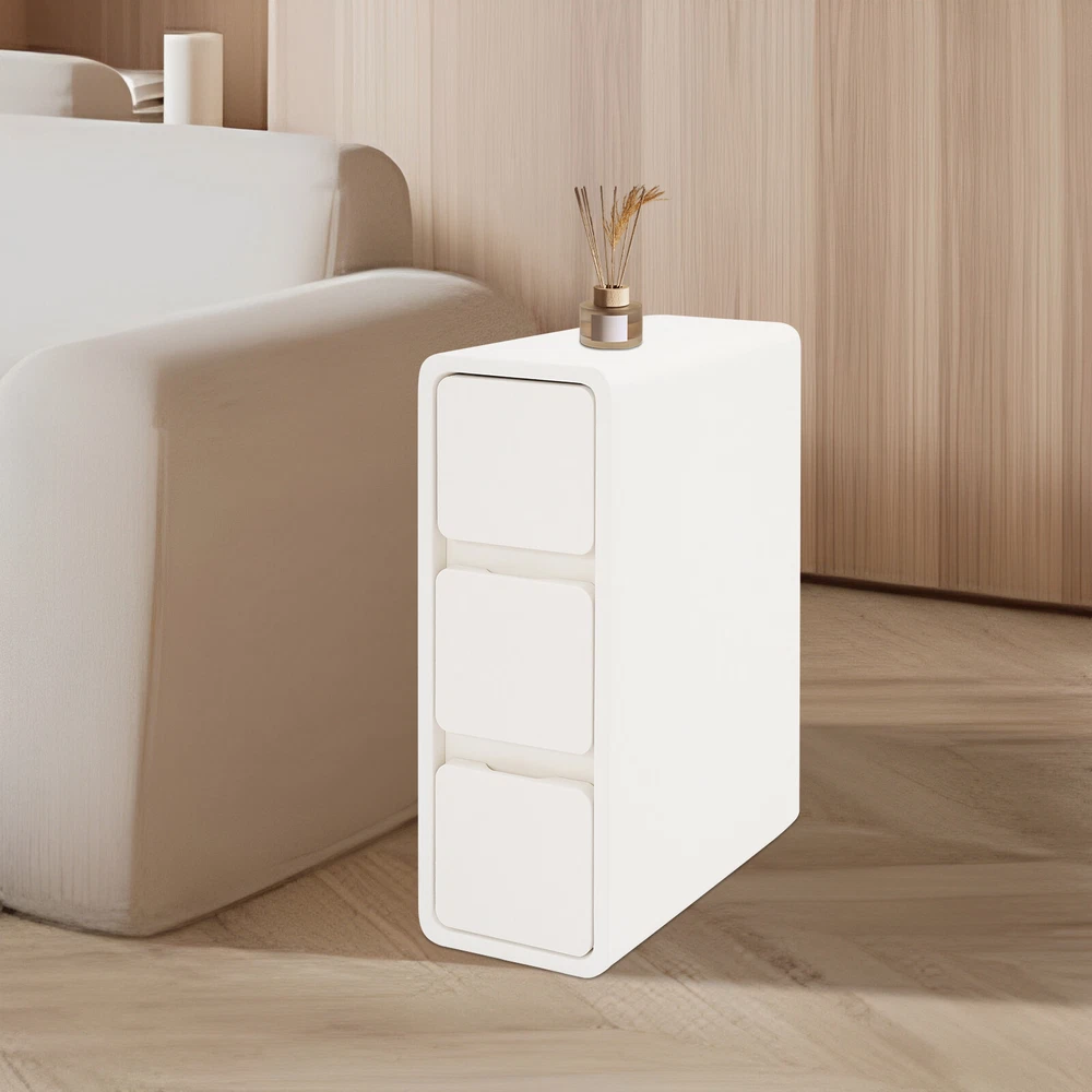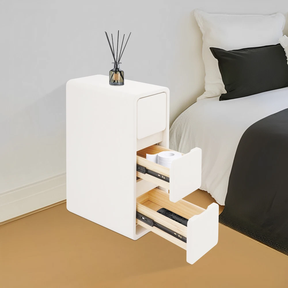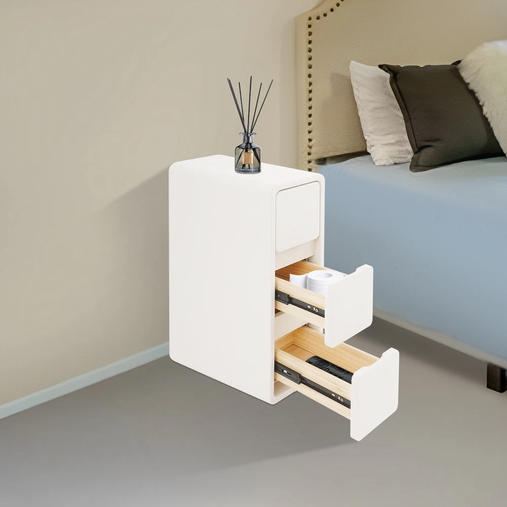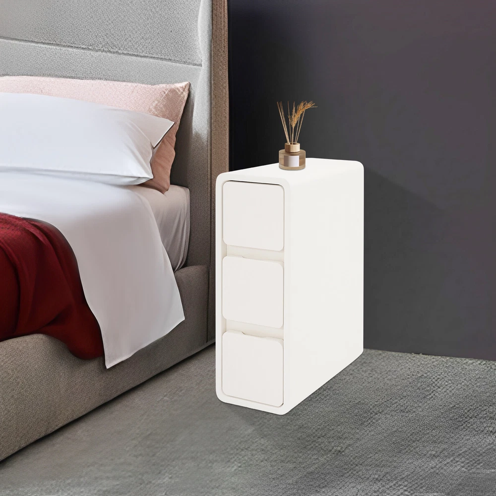 Off-White Narrow Nightstand with Drawers for Small Spaces