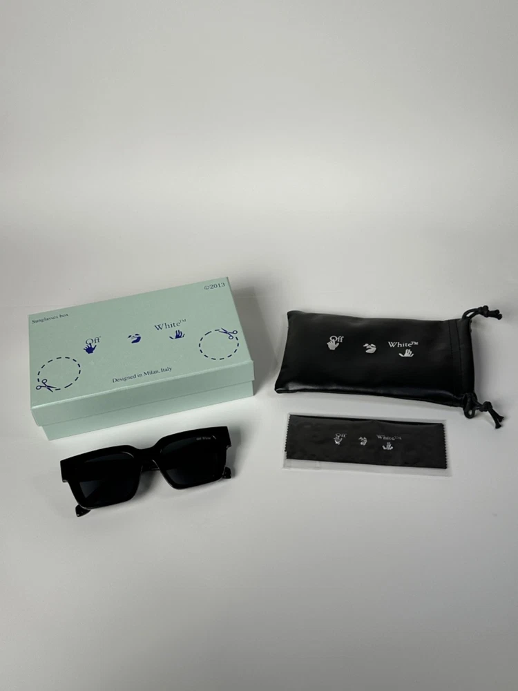 Frame Color: Black Temple Length: 145 mm UV Protection: UV400 Country of Origin: Italy Department: Men Frame Material: Acetate, Plastic Type: Sunglasses Lens Technology: Anti-Reflective, Polarized, Tinted Pattern: Solid Style: Square Brand: Off-White Lens Color: Black Personalized: No Theme: Designer, Logo Features: Lightweight, Oversized Model: Off-White Square