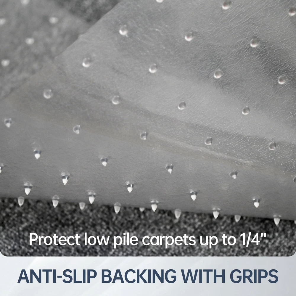 Office Chair Mat for Carpeted Floors, 48" x 30" Low Pile Carpet Protector for Desk Chair, Sturdy Clear Plastic Floor Mat for Rolling Chairs (Rectangle) Product Details Size: 30" x 48" Color: For Low Pile Carpet Brand: Futurwit MPN: Does not apply UPC: Does not apply EAN: Does not apply Material: Polyvinyl chloride Brand: Futurwit Size: 30" x 48" Color: For Low Pile Carpet Style: Modern Shape: Rectangular Product Dimensions: 48"L x 30"W x 0.09"Th Surface Recommendation: low pile carpet Corner Style: Rounded Manufacturer: Futurwit Material: Polyvinyl chloride Brand: Futurwit Size: 30" x 48" Color: For Low Pile Carpet Style: Modern Shape: Rectangular Product Dimensions: 48"L x 30"W x 0.09"Th Surface Recommendation: low pile carpet Corner Style: Rounded Manufacturer: Futurwit Item Weight: 6.3 pounds Country of Origin: China Date First Available: May 22, 2024 LONG LASTING PROTECTION FOR YOUR CARPET: Office chair mat protect your carpet from damage caused by chair casters rubbing, scratches or dirt, and keep your office area clean and tidy. PREMIUM PLASTIC MATERIAL: The desk chair mats are made of durable PVC with a thickness of 2.2mm, scientifically designed for hardness, they will not curl after unfolding and have a high resistance to cracking. STRONG GRIP: The back of the chair mat for carpets comes with 5mm nails to hold the office mat for carpet firmly to the carpet. Suitable for low pile carpets up to 1/4" pile height. HIGH TRANSPARENCY: Office mats for rolling chairs made of highly transparent material, won't cover the beautiful carpet, won't yellow with long term use, daily cleaning is very simple, just wipe with a damp cloth. MULTIPLE SPECIFICATIONS AVAILABLE: We have a wide range of floor mats with various specifications, whether it's a carpet or hard floor option, you can find the right sized chair mats.