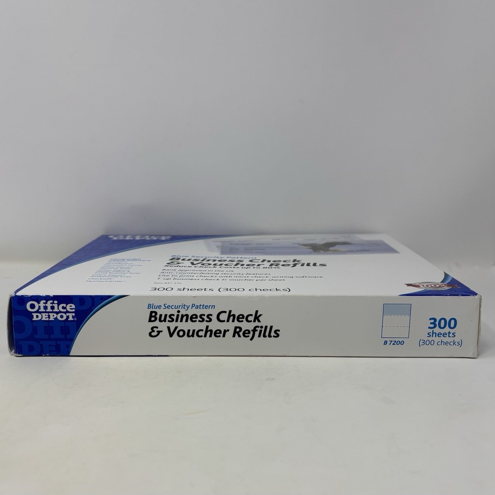 Office Depot 300 Business Check & Voucher Refills Use w/ Quickbooks Checksoft + Brand new and unused in open box. Refer to images for details. The Office Depot 300 Business Check & Voucher Refills are blank checks specifically designed for use with Quickbooks Checksoft +. Made by Office Depot in the United States, these check and voucher refills come in a pack of 300 and are perfect for businesses looking to streamline their accounting and record-keeping processes. These high-quality checks provide a convenient and efficient way to manage and organize financial transactions within a business setting.