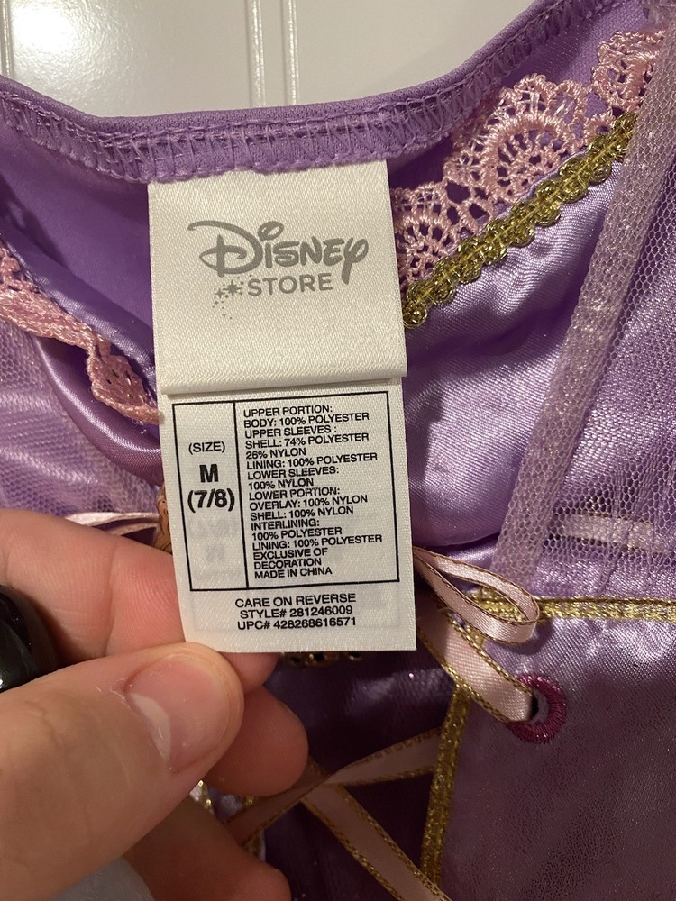 Features: Elastic/Stretch Size: M Material: Polyester Style: Dress Brand: Disney Personalize: No Theme: Rapunzel Color: Purple Materials sourced from: China