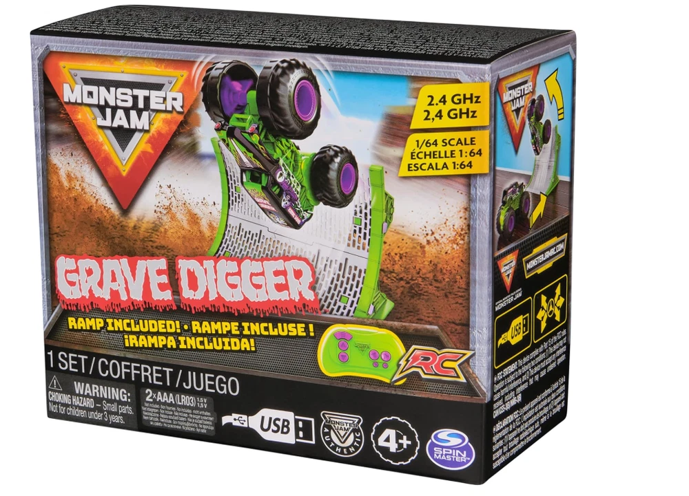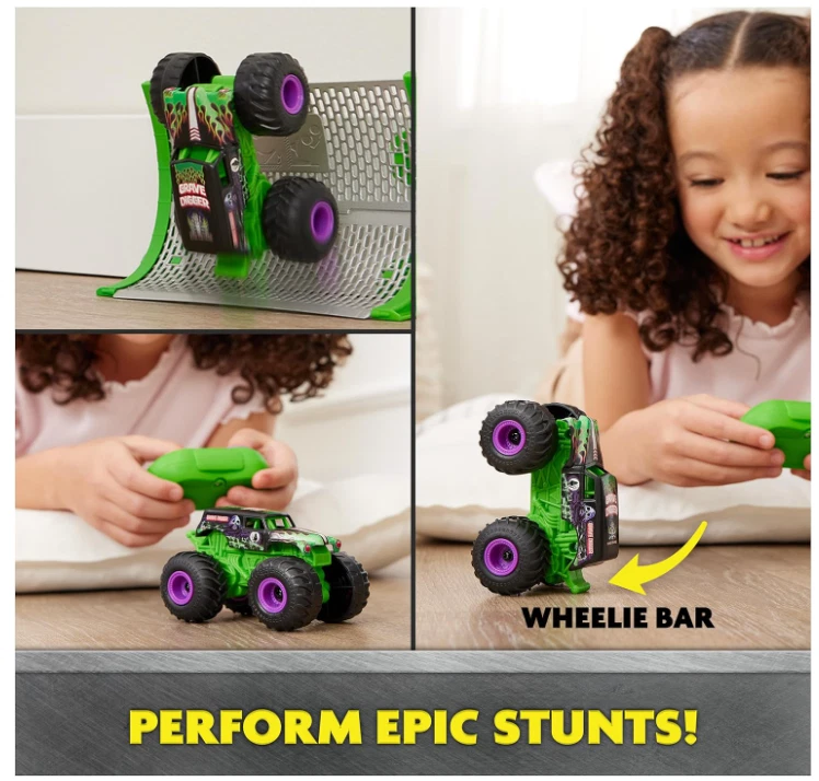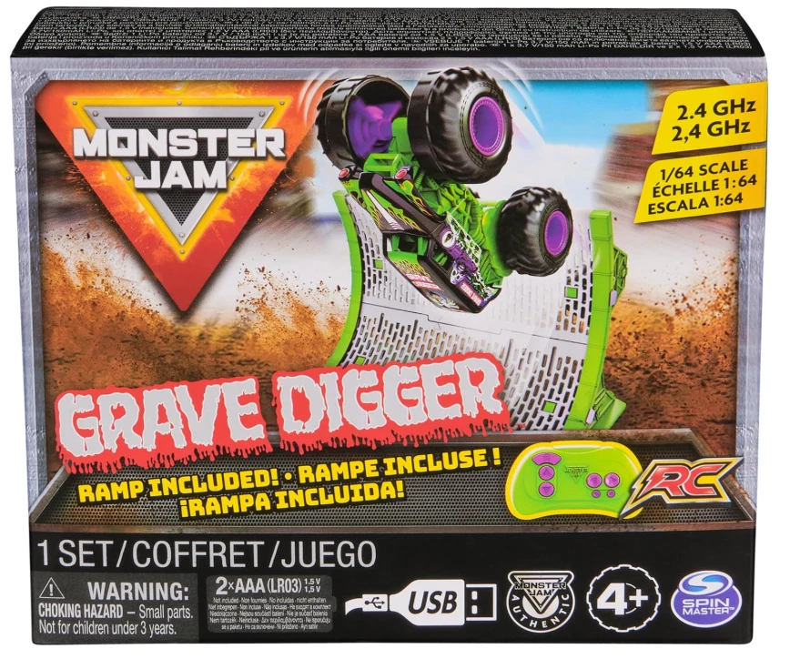 Grave Digger RC Monster Truck – Official 1:64 Scale Get ready for high-speed, gravity-defying fun with the official Grave Digger RC Monster Truck ! This 1:64 scale (3.9 inches) truck is designed to look just like the iconic Grave Digger, featuring authentic graphics, oversized tires, and highly realistic details. With a dual-joystick controller and turbo boost mode, you’re all set to experience the thrill of Monster Jam! Realistic Design : Grave Digger features impressive graphics and details that resemble the real Monster Jam truck. Turbo Boost Mode : Speed into action with turbo boost mode to launch Grave Digger onto the ramp or into epic stunts. Ramp Included : Transform any space into a Monster Jam arena with the included ramp. Perform stunts, flips, and watch the action unfold! Fully Functional : Equipped with a 2.4 GHz frequency dual-joystick controller, offering a range of up to 100ft and the ability to race up to 6 trucks simultaneously. Perfect Gift for Kids : Ideal for kids ages 4-14, this Monster Jam RC truck is a hit on birthday and holiday wish lists, providing hours of fun and excitement. Package Includes: 1 x Monster Truck (Grave Digger) 1 x Controller 1 x Ramp 1 x USB Charging Cable 1 x Instruction Guide Product Details: Product Dimensions : 6.25 x 2.88 x 5.25 inches Weight : 7.83 ounces Recommended Age : 4 - 14 years SHİPPİNG & RETURN FREE Shipping on all orders. Orders are shipped within 1-2 business days after payment confirmation. For 95% of our items, we offer express shipping services (receive your item within 1-5 business days). In rare cases, delivery times may be slightly extended due to unforeseen circumstances. For delivery status updates, feel free to contact us anytime — we respond as quickly as possible. 30-Day Return Policy: You can return your item within 30 business days.