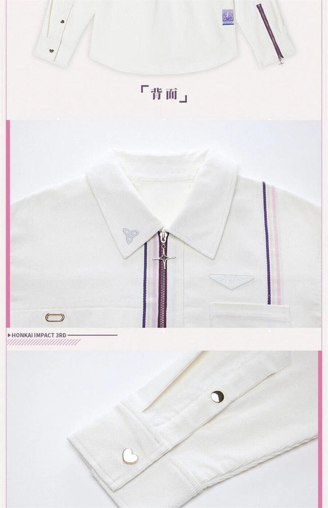 Outer Shell Material: Cotton Country/Region of Manufacture: China Style: Overshirt Occasion: Cosplay Size Type: Regular Department: Unisex Adults Brand: Unbranded Theme: Anime Character Family: Honkai Impact 3 Season: Spring, Fall Type: Jacket Closure: Zip Character: Elysia Sleeve Length: Long Sleeve